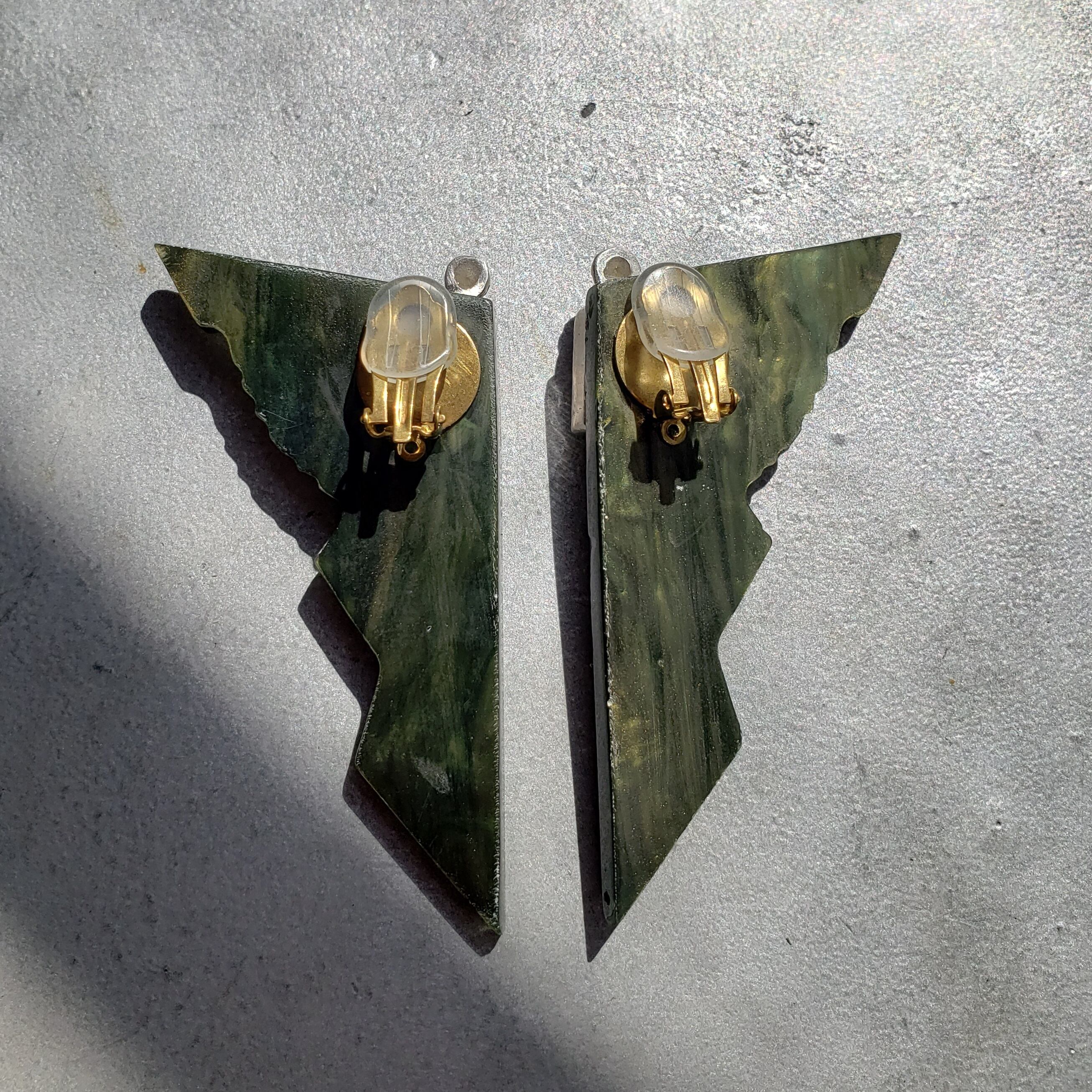 なんとも言えないカラーが素敵な、フランス製ルーサイトプラスチックと天然石のユニークでカッコいいイヤリングです。