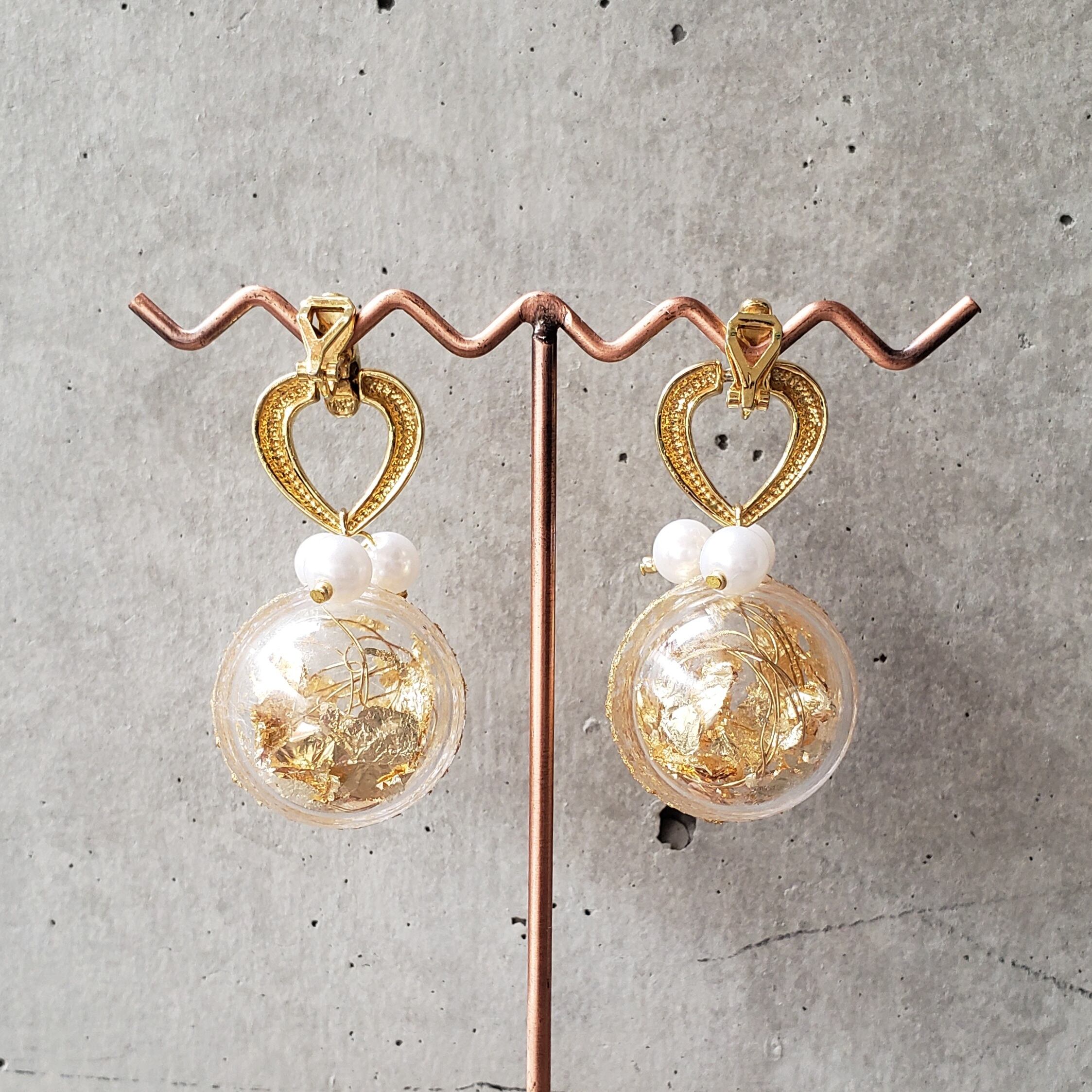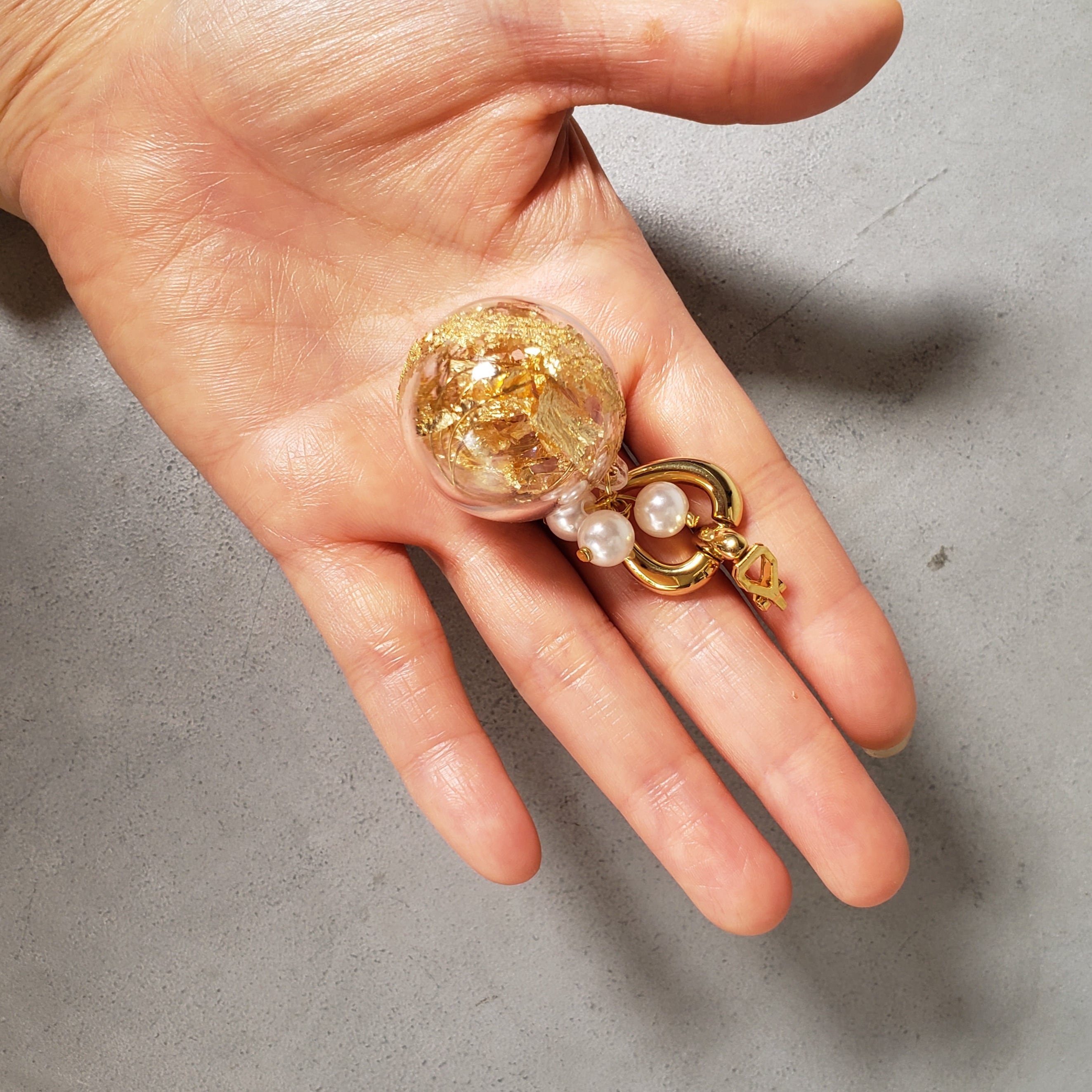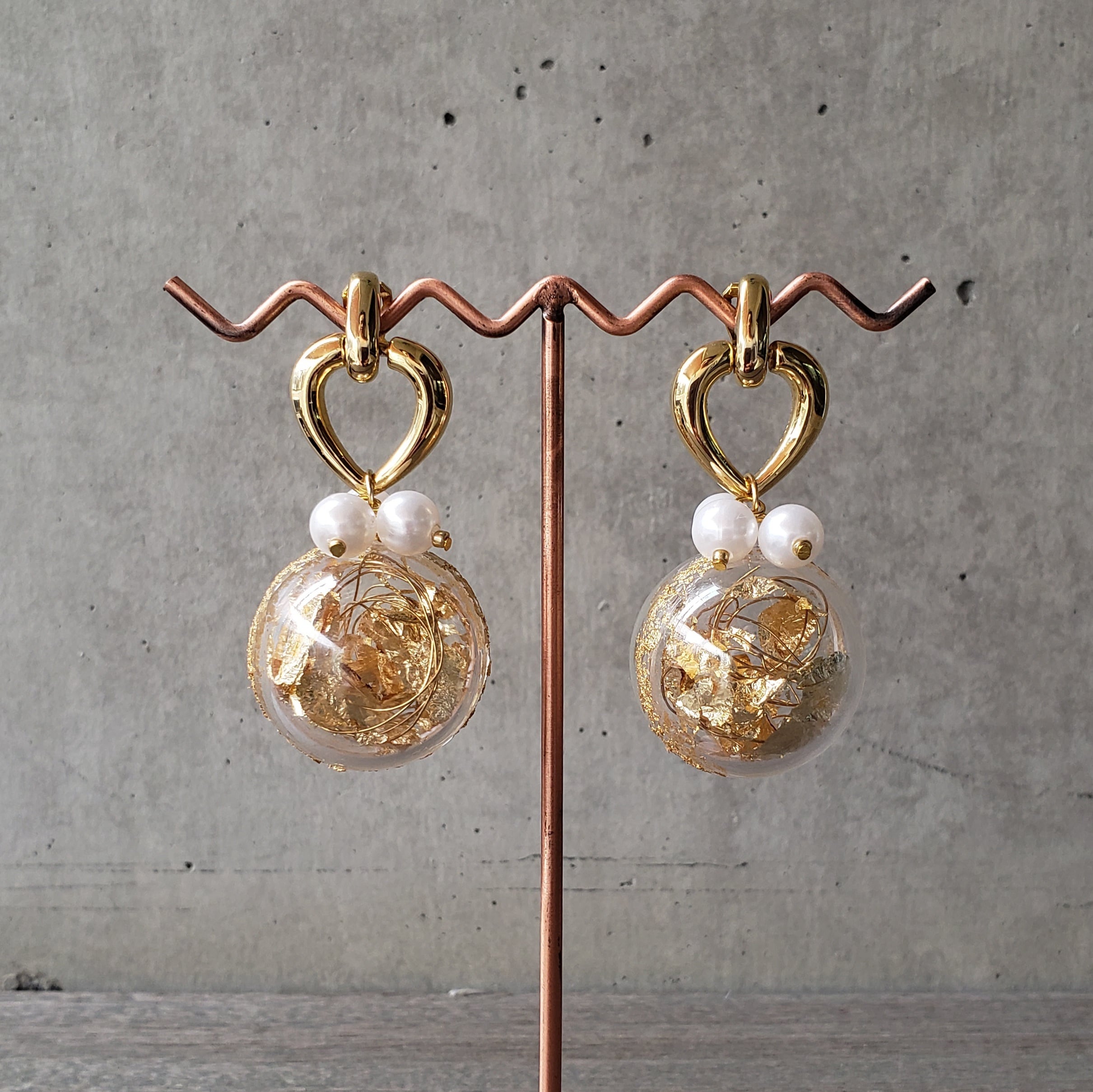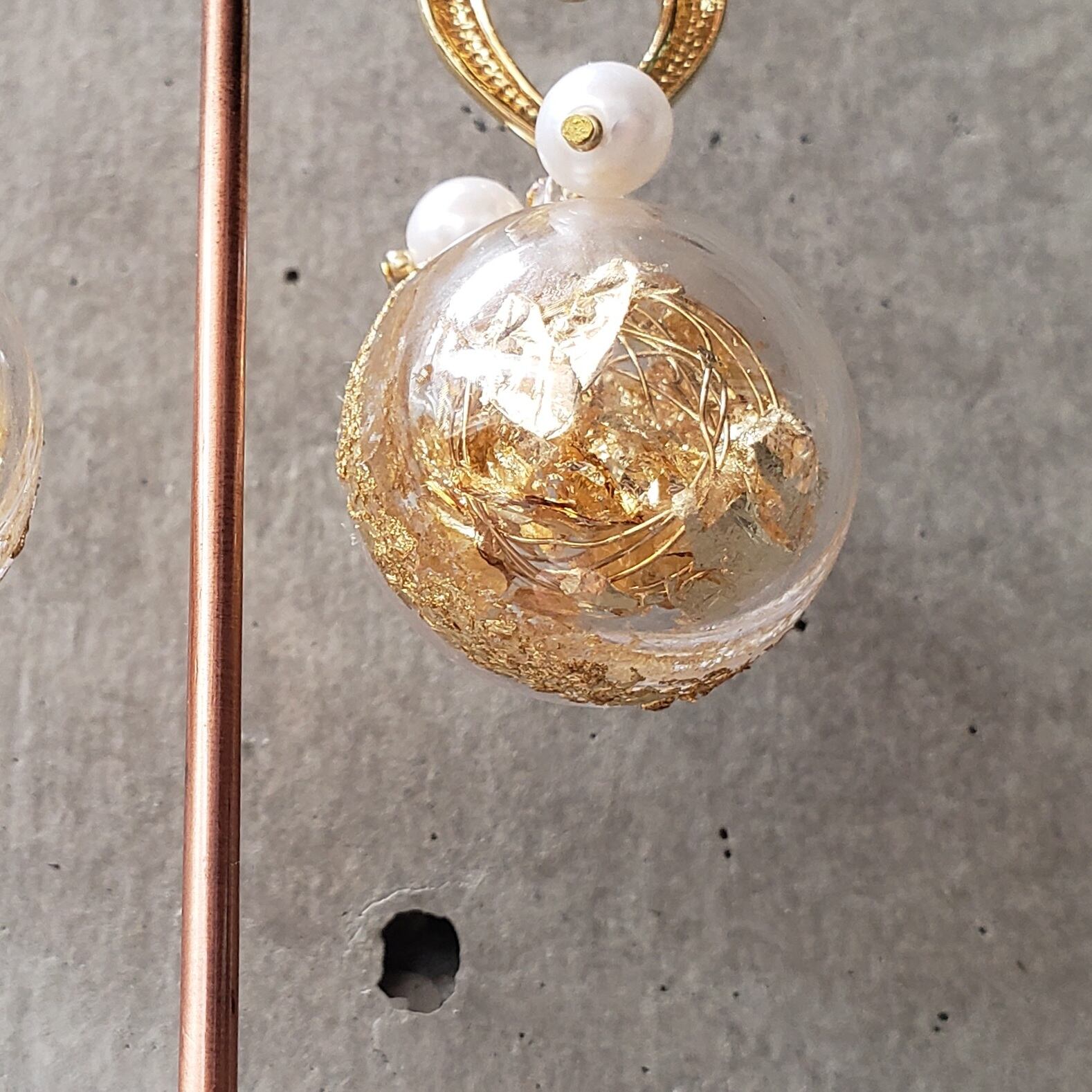 ぷっくりクリアボールの中にはきらびやかなゴールドカラー泊が封入されています。リッチで軽やかな気分にしてくれそうな耳飾りです。