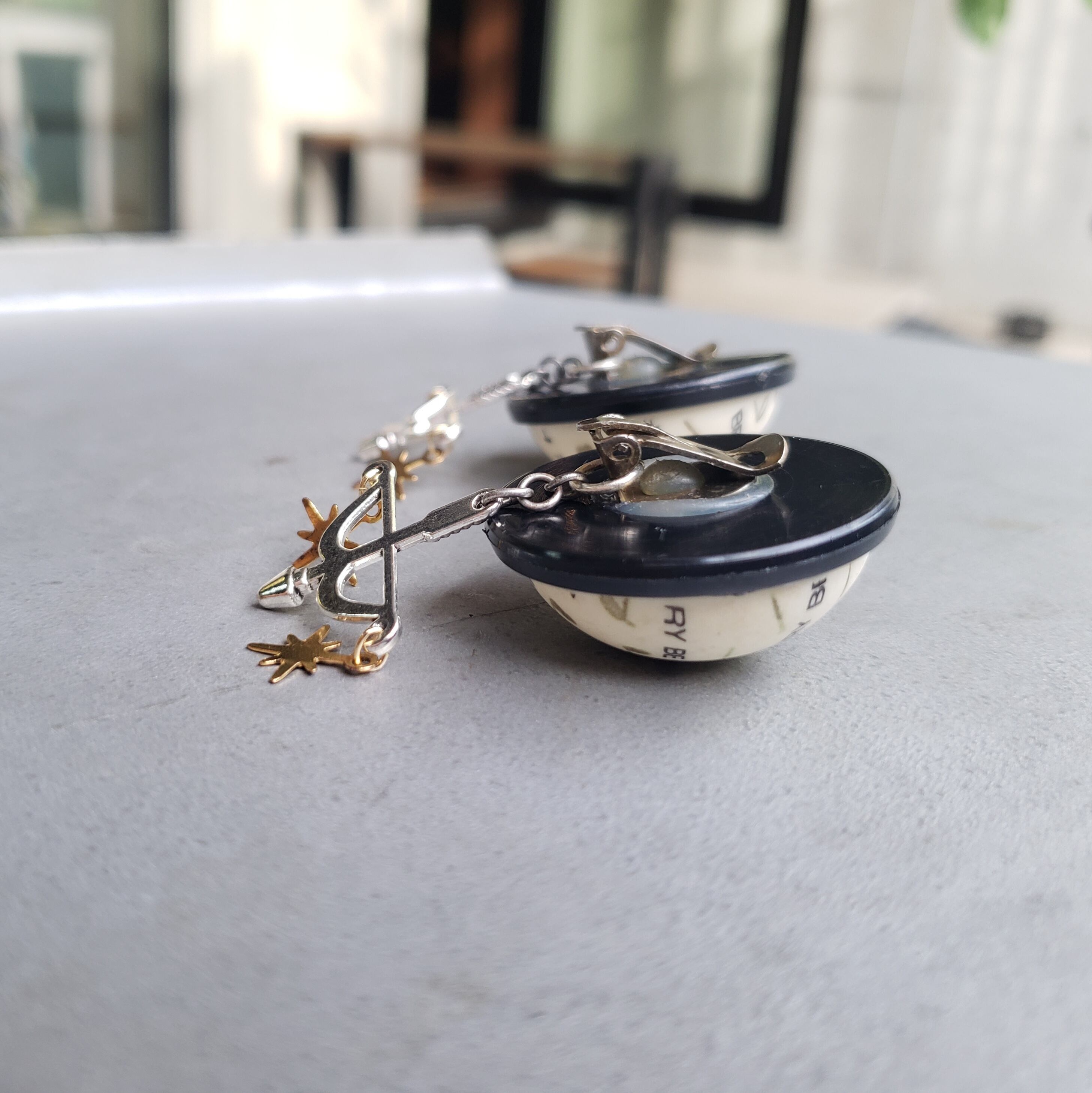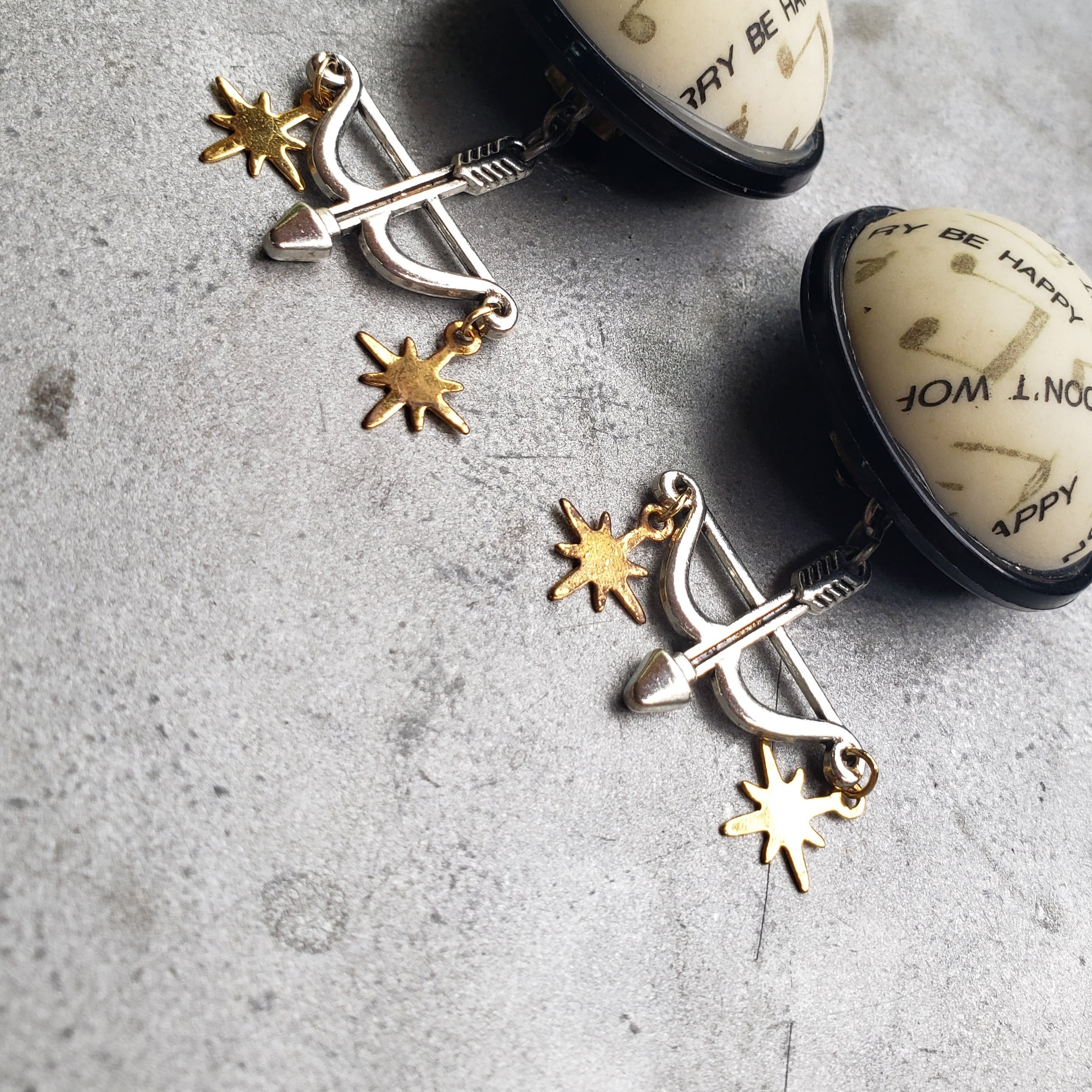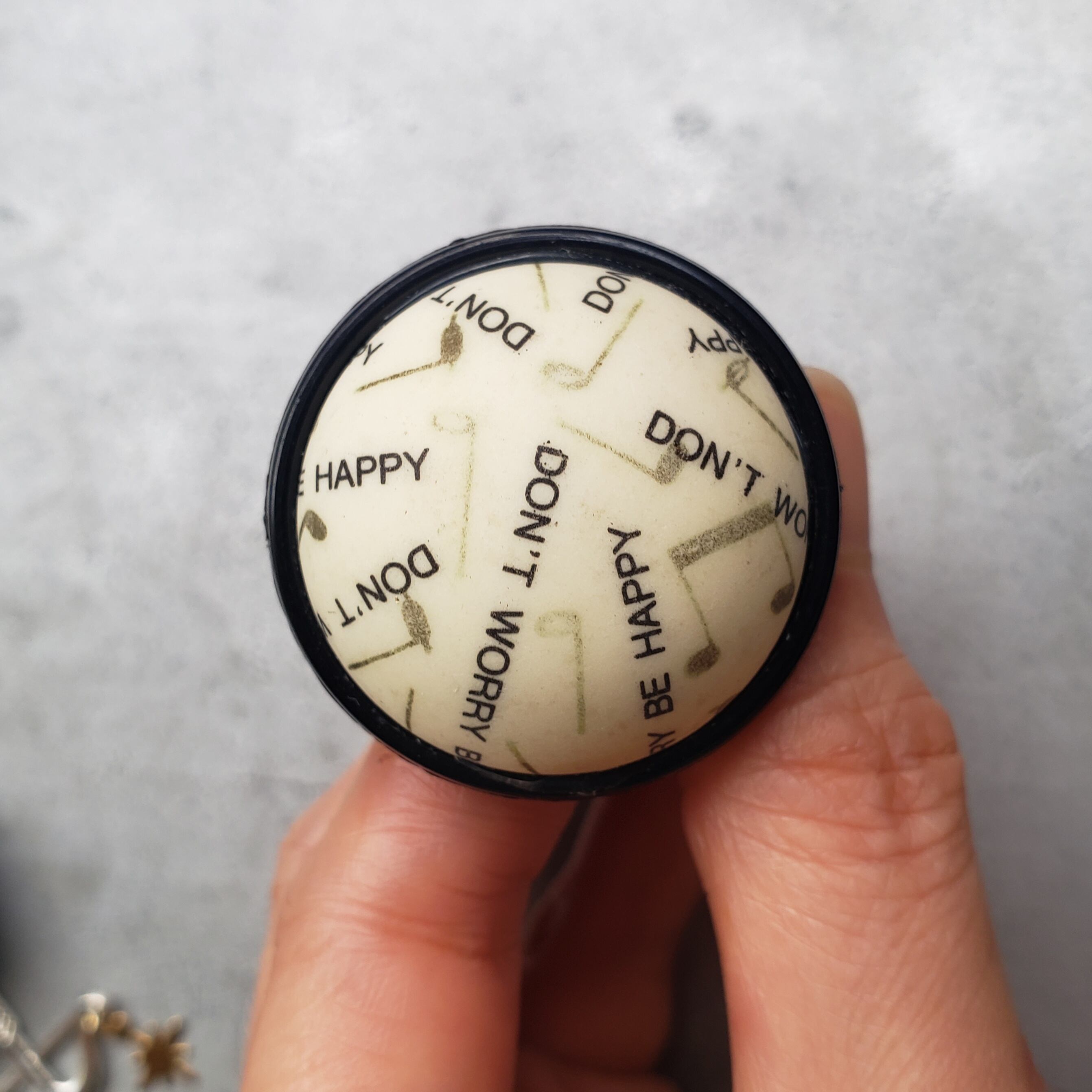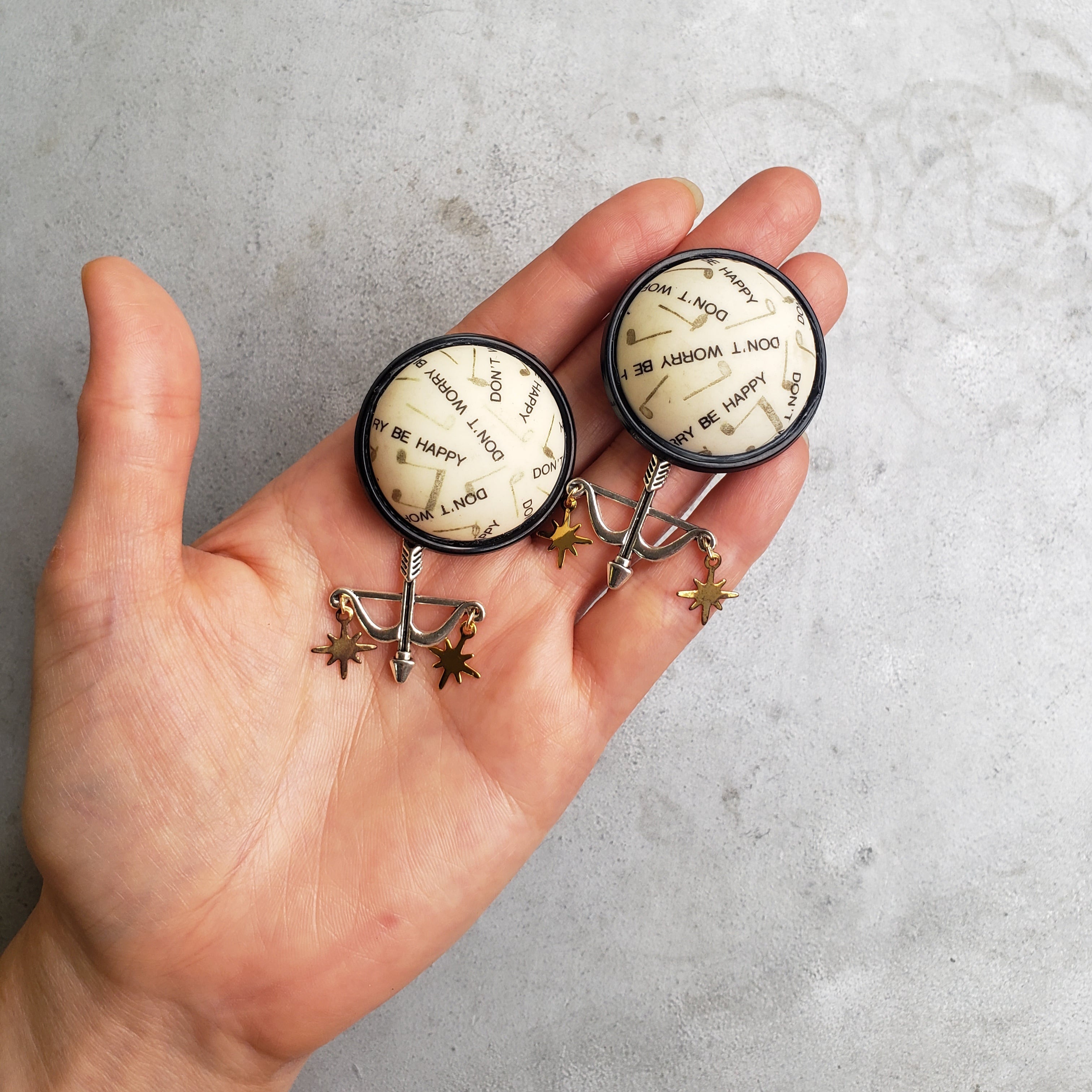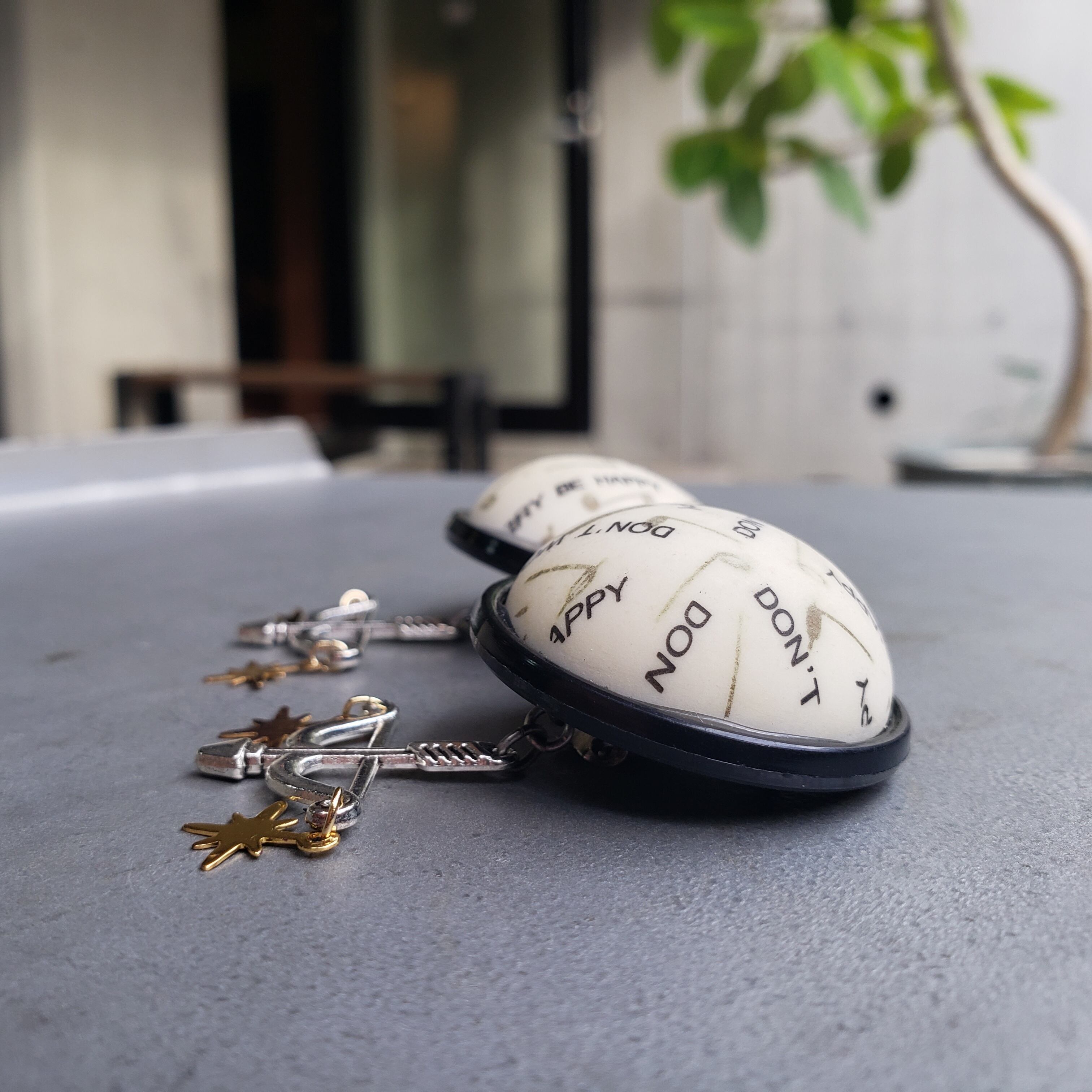 スタンダードなプラスチックカボションに音符とメッセージがプリントされた、音楽に縁のある方にぴったりの楽しいイヤリング。