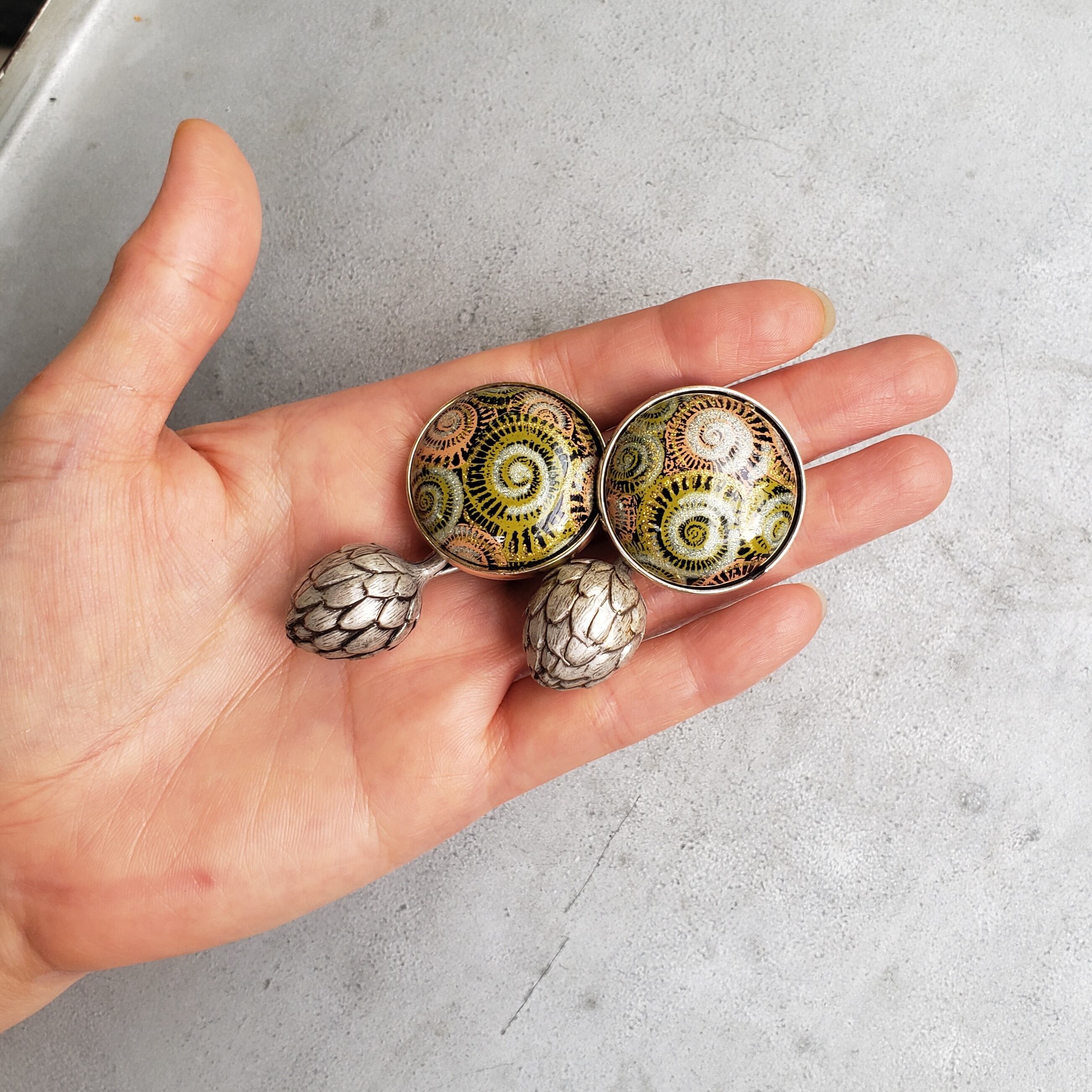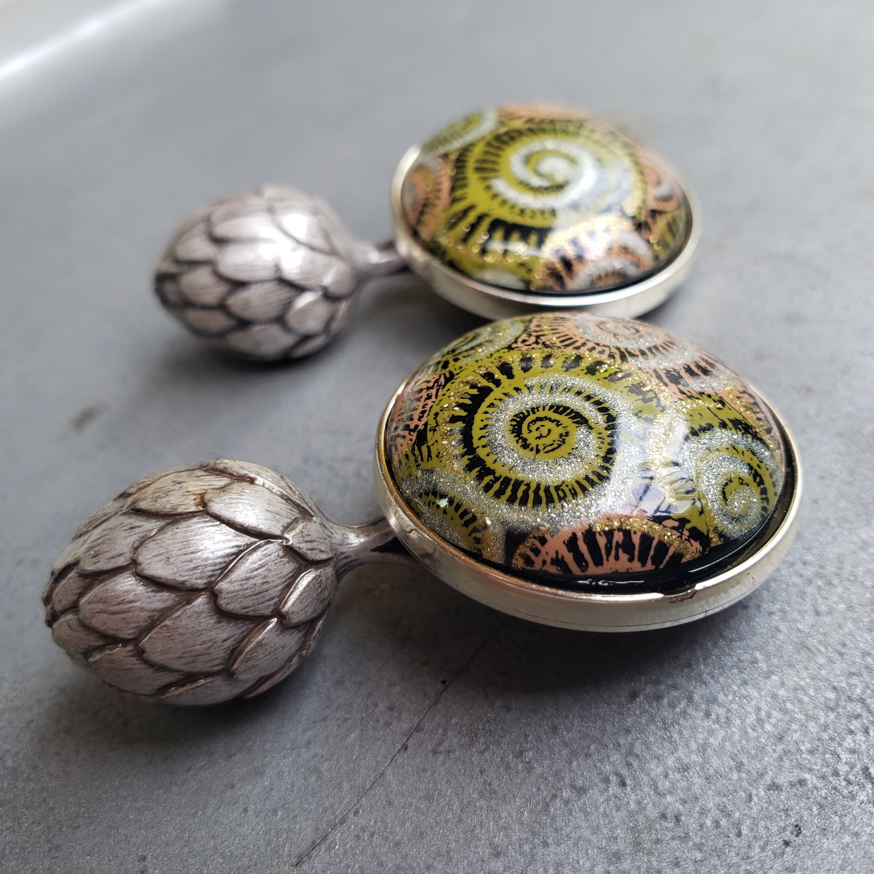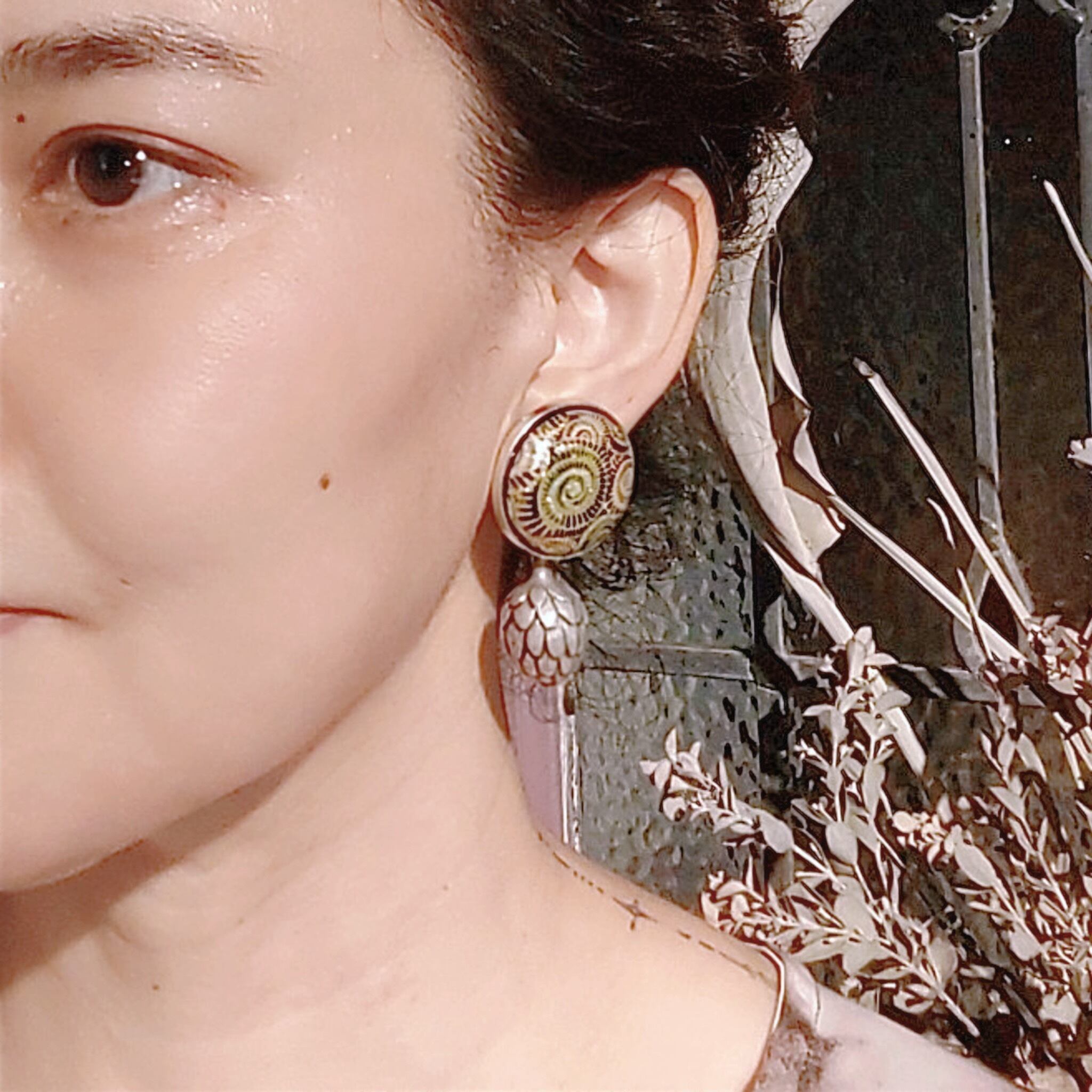 1980s / アンモナイトとアンティチョーク/ Vintage クリップイヤリングまたはピアス