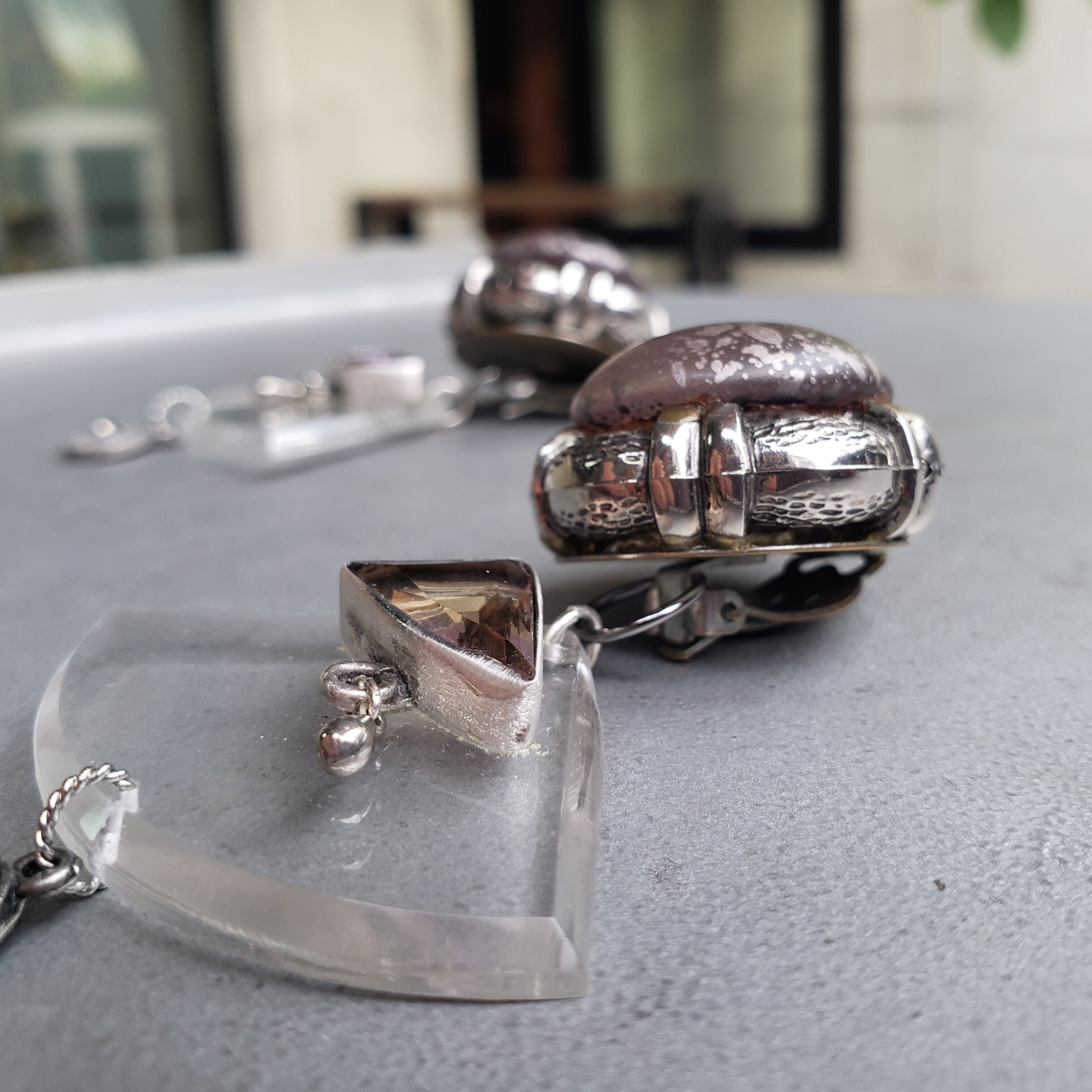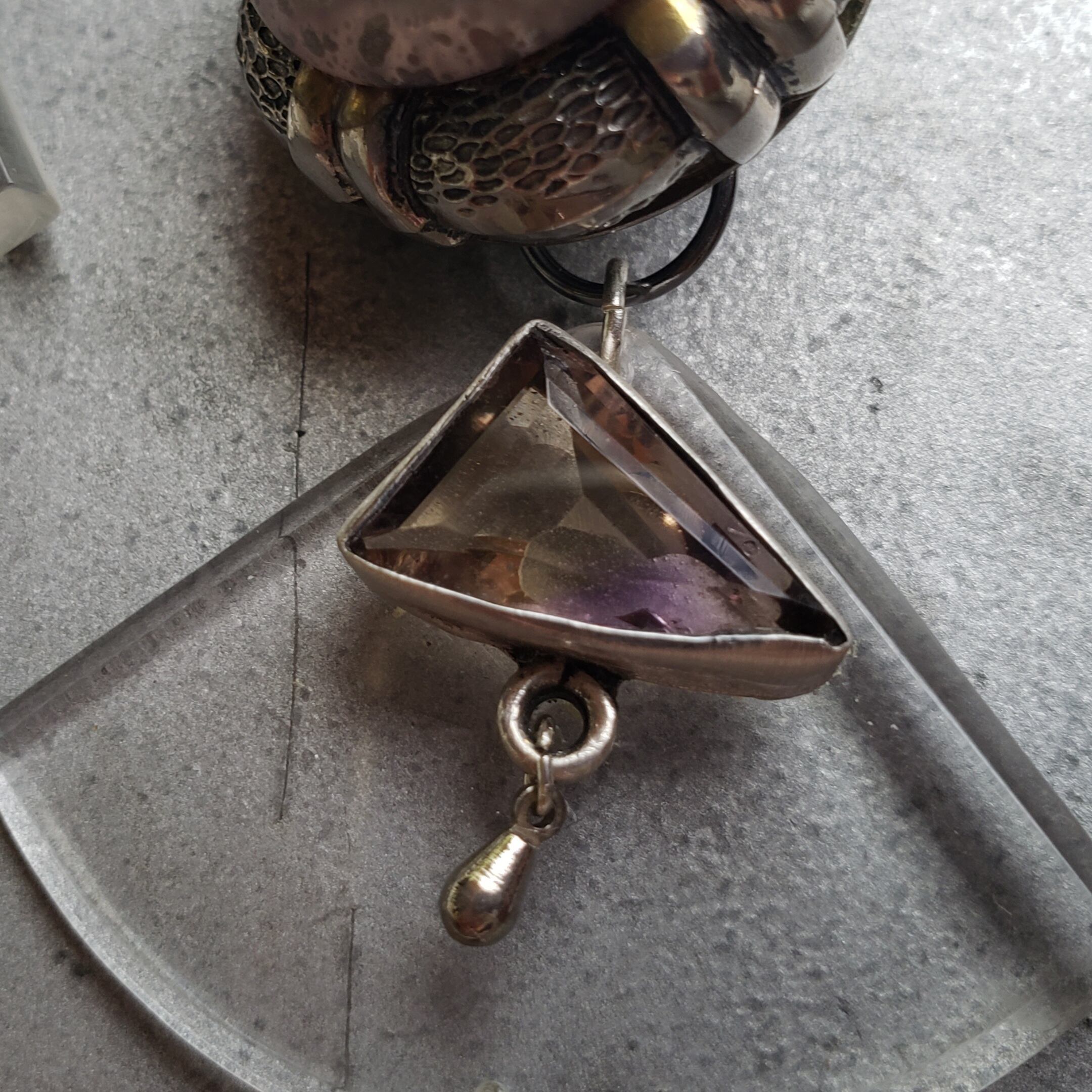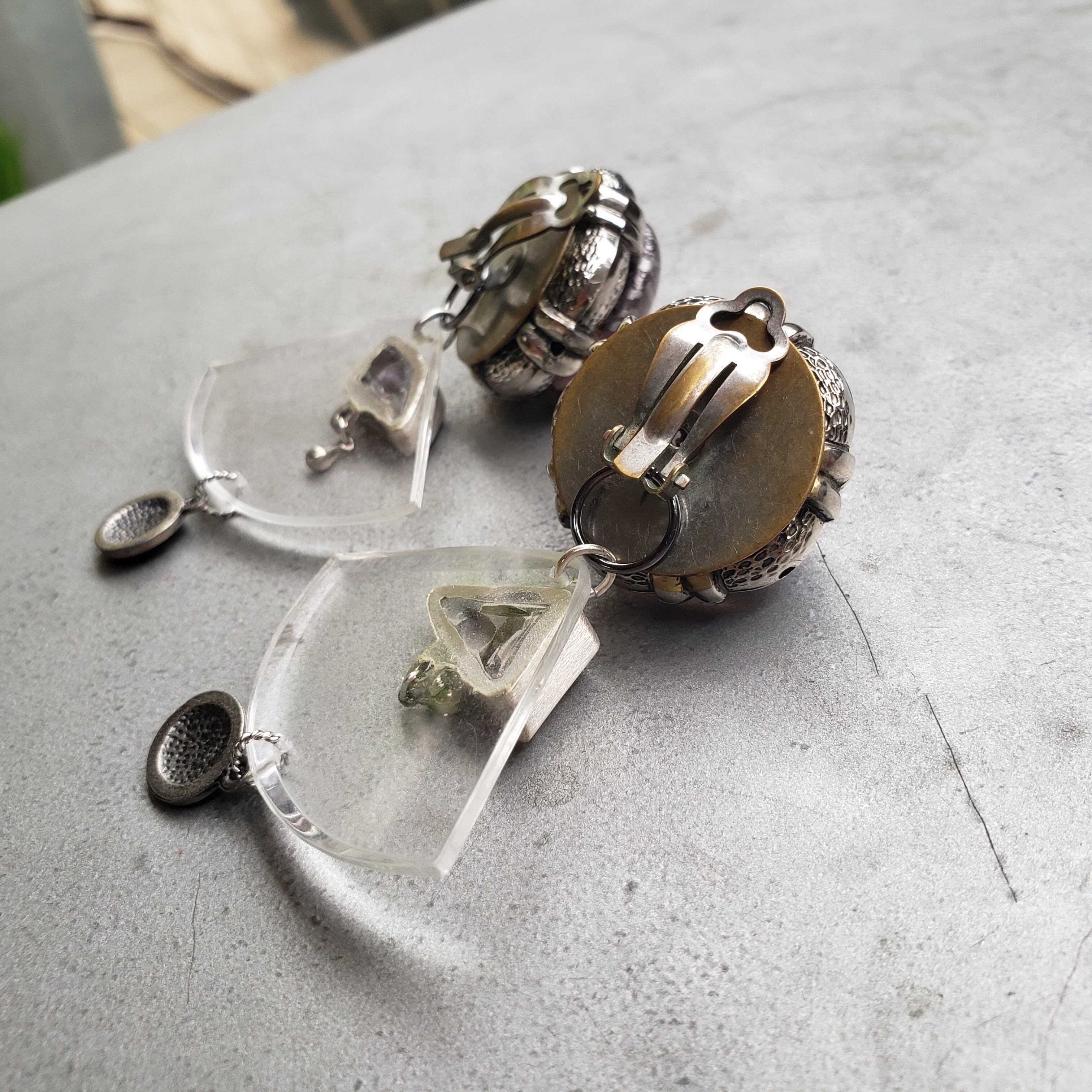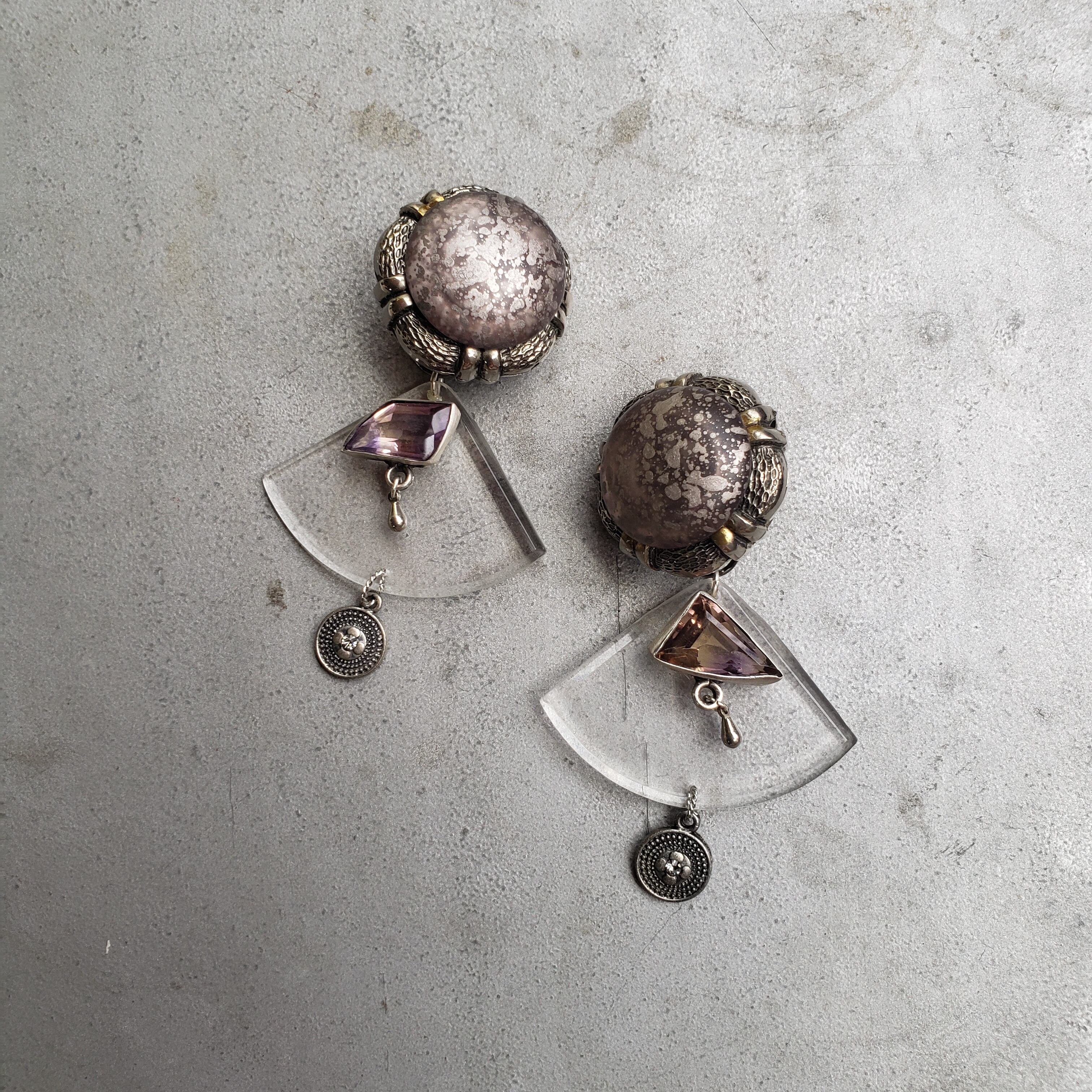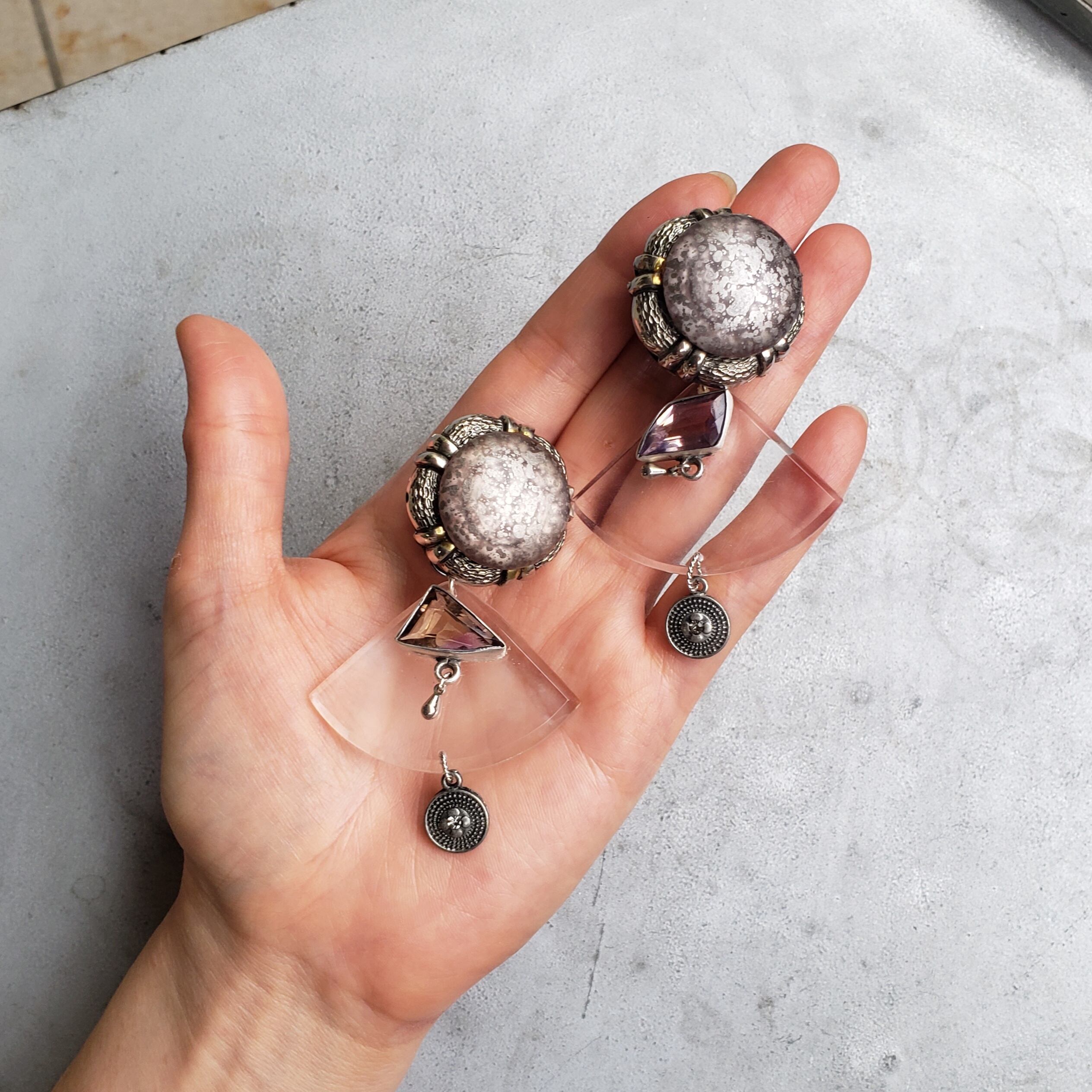 1960s / ライラック そばかすルーサイトとアメトリン / Vintage クリップイヤリングまたはピアス