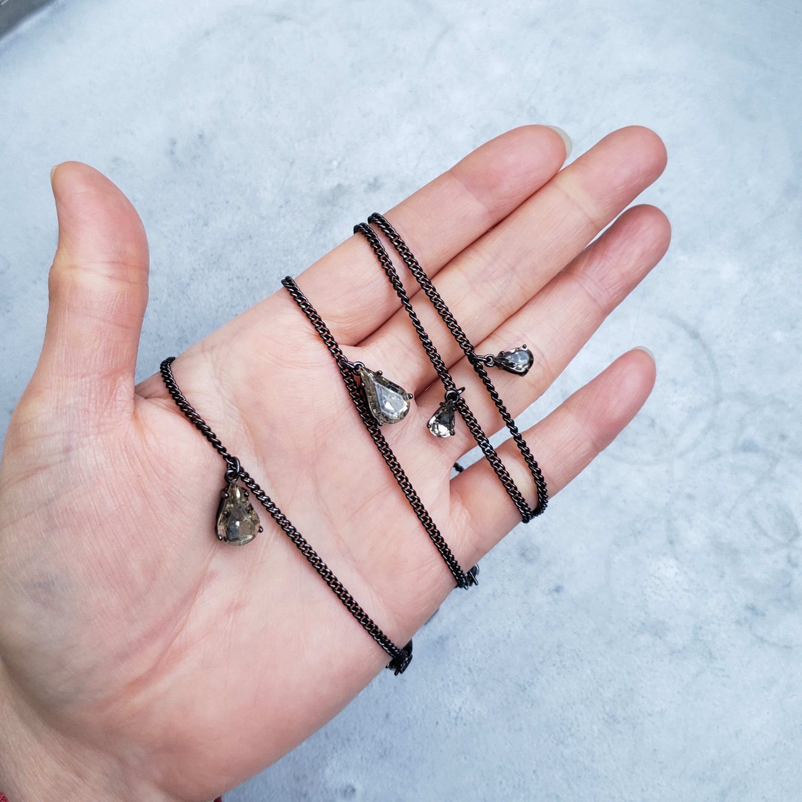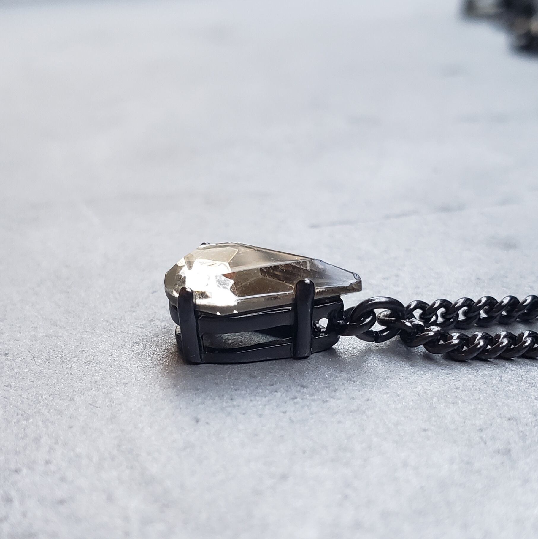 1990s / スモーキードロップクリスタル / Vintage ブラックチェーンネックレス