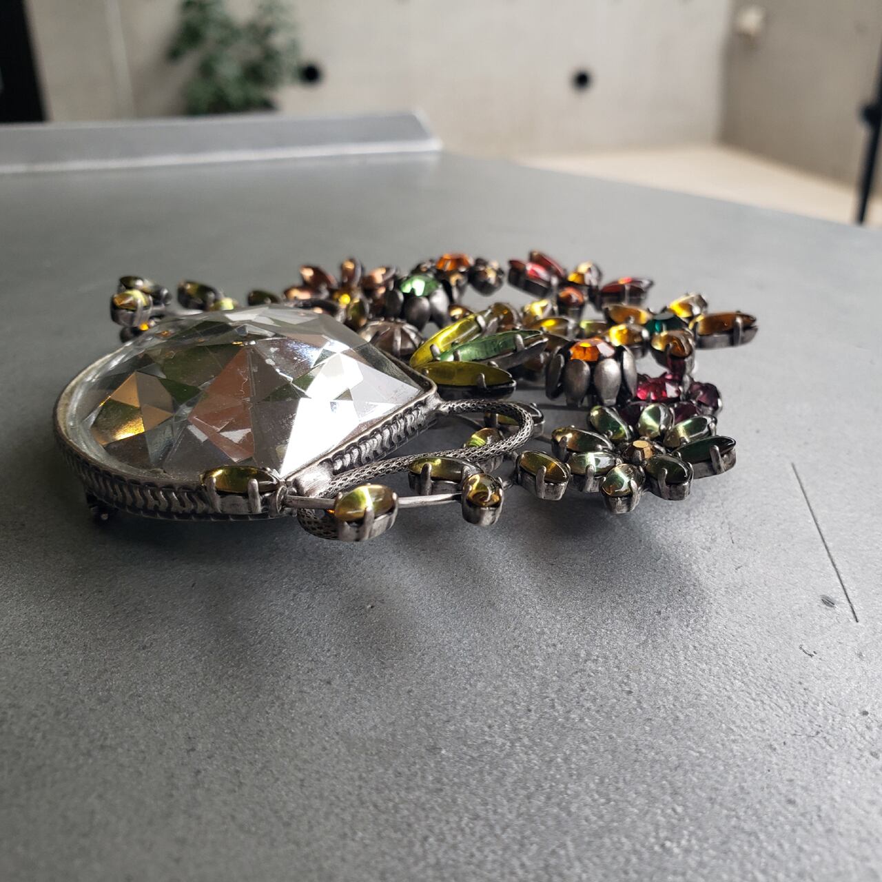 ひとつの製品に沢山のガラスをセッティングする場合、コスチュームアクセサリーとしてはノリ留めされるのが一般的ですがこちらはひとつひとつ爪留めされています為、それもデザインの一部となっていて高級感がございます。
