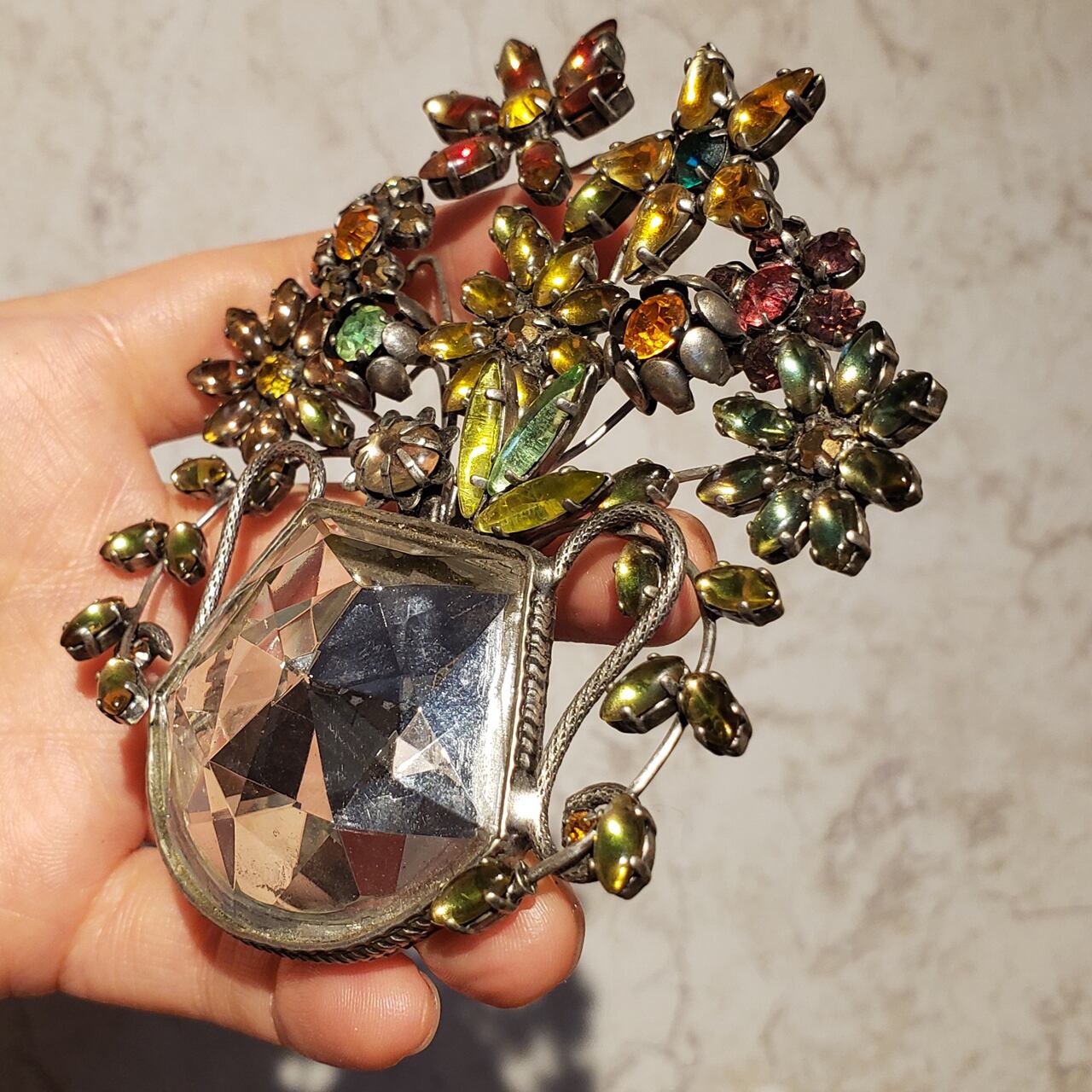 BR-035 / 胸キュン美しい!ヴィンテージガラス / 大ぶりデザインブローチ