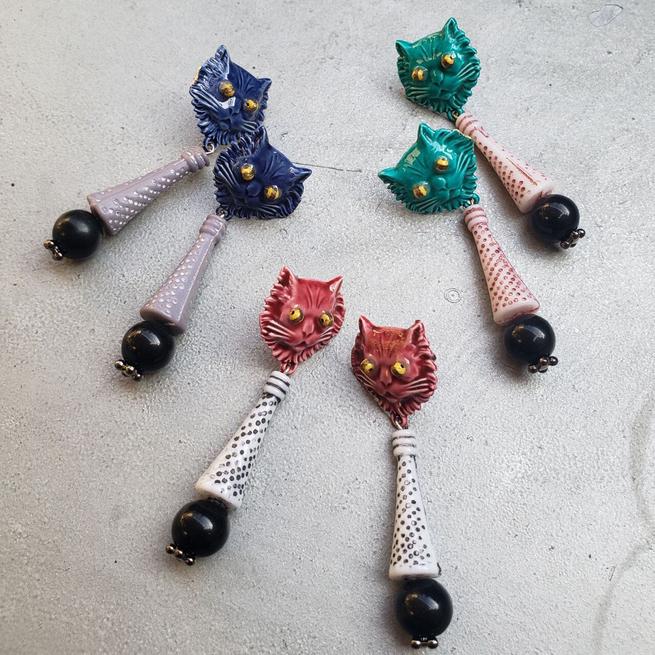 本気な目力強めが逆にチャーミングな猫さんモチーフのエナメルピアス3カラー☆彡
