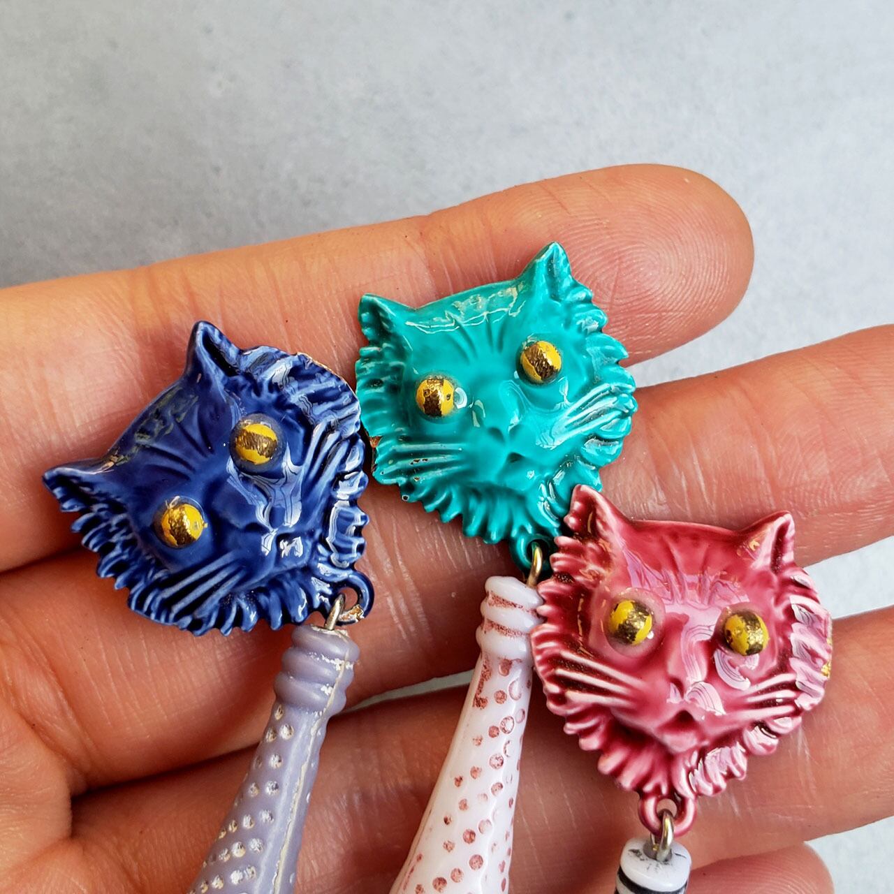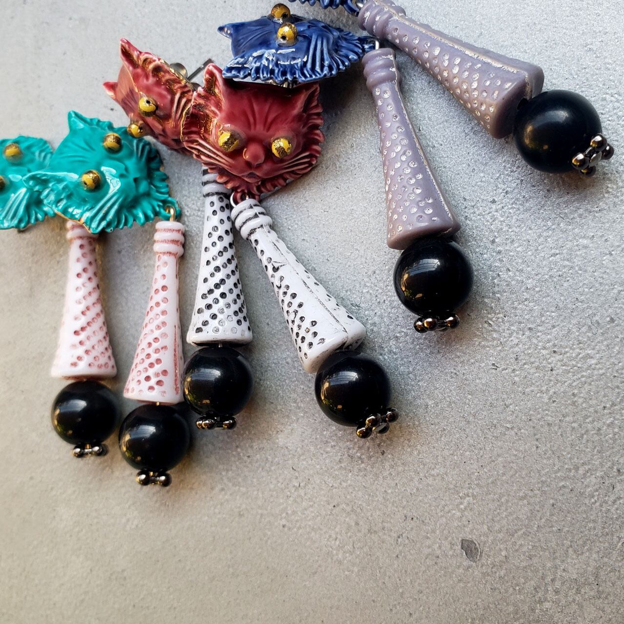 1960年代にパリで作られた猫エナメルパーツとヴィンテージパーツの組み合わせ。