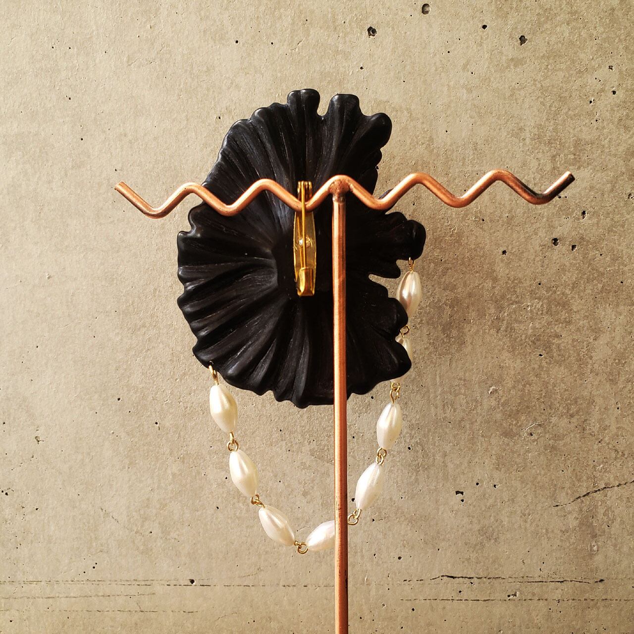 こちらはブローチ、また55cm~60cmほどのチェーンネックレスであれば胸元に落ち着いてお召し頂けるペンダントヘッドとしてもご愛用頂けます。