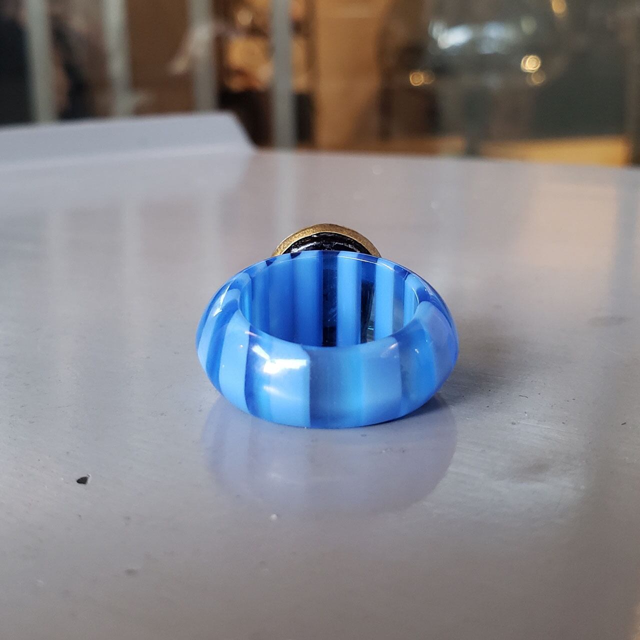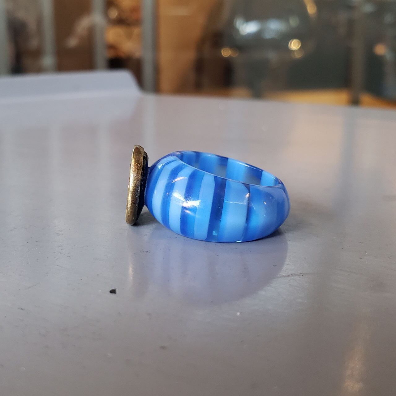 CR-0041 / 1940's-60's / France & U.S. / しましまブルーマリン / Vintage コンボ Ring