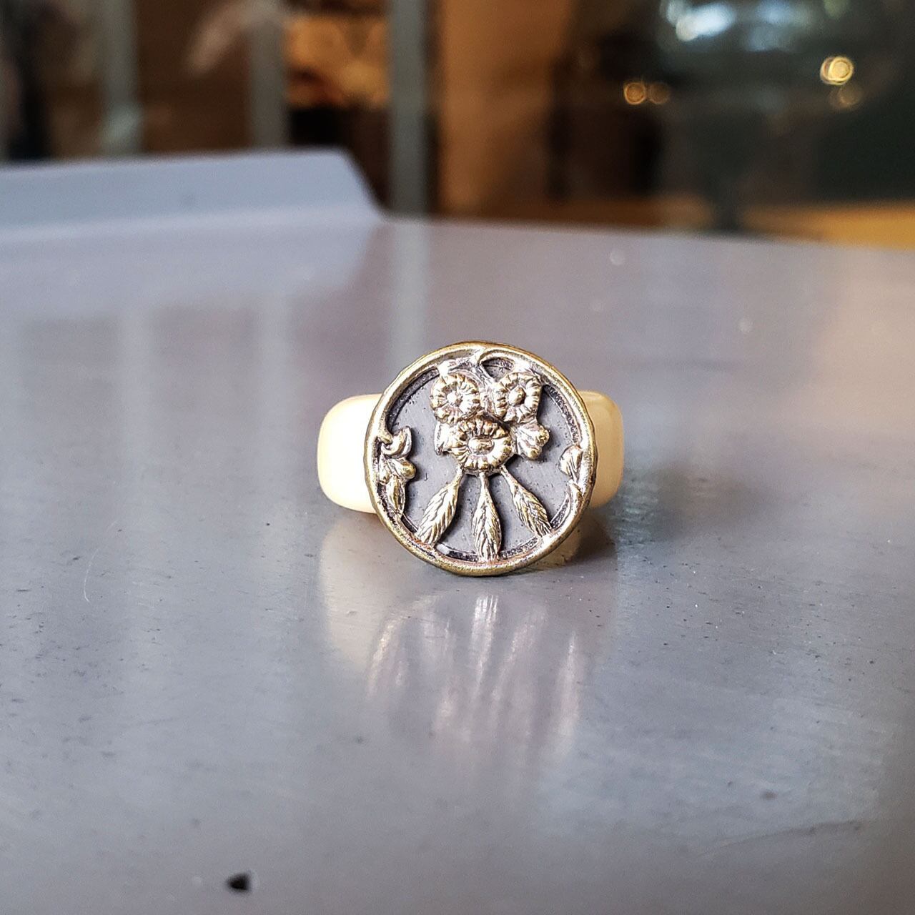CR-0042 / 1940-50's / France & U.S. / イヴォワリン / 小さいサイズ / Vintage コンボ Ring