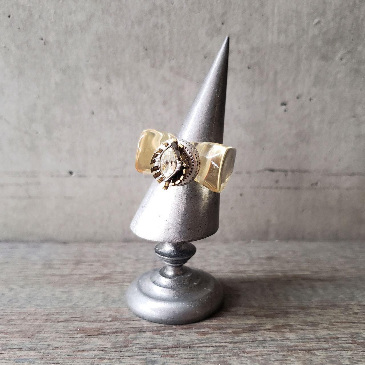CR-0060 / 1960-80's / France / U.S. / クリアイエロー Lucite / とっくりクラウン / Vintage Combo ring