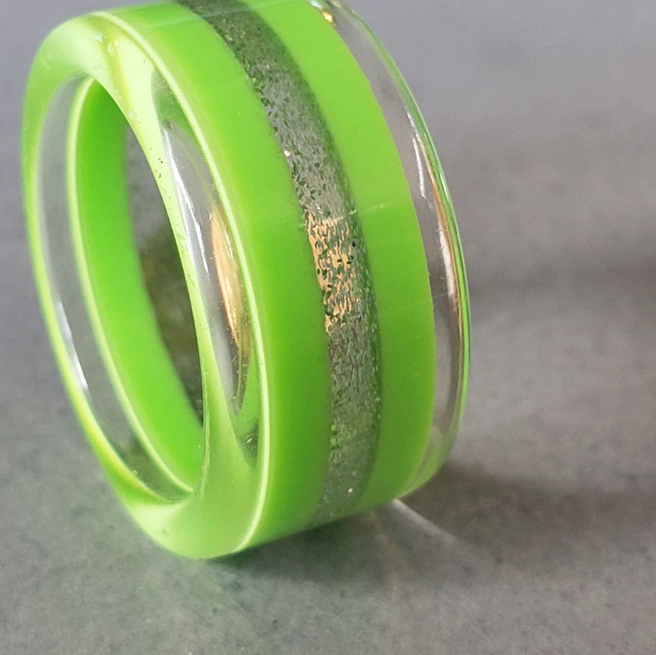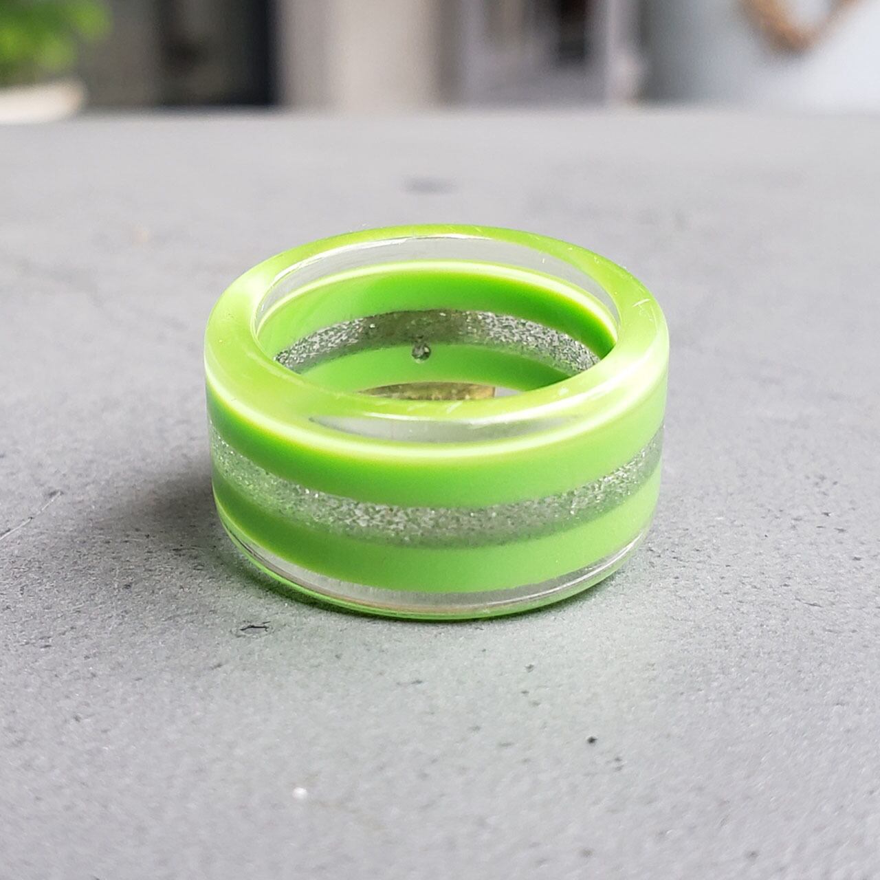 CR-0061 / 1960-80's / England / グリッターストライプ Lucite / ひょっこり MOP / Vintage Combo ring