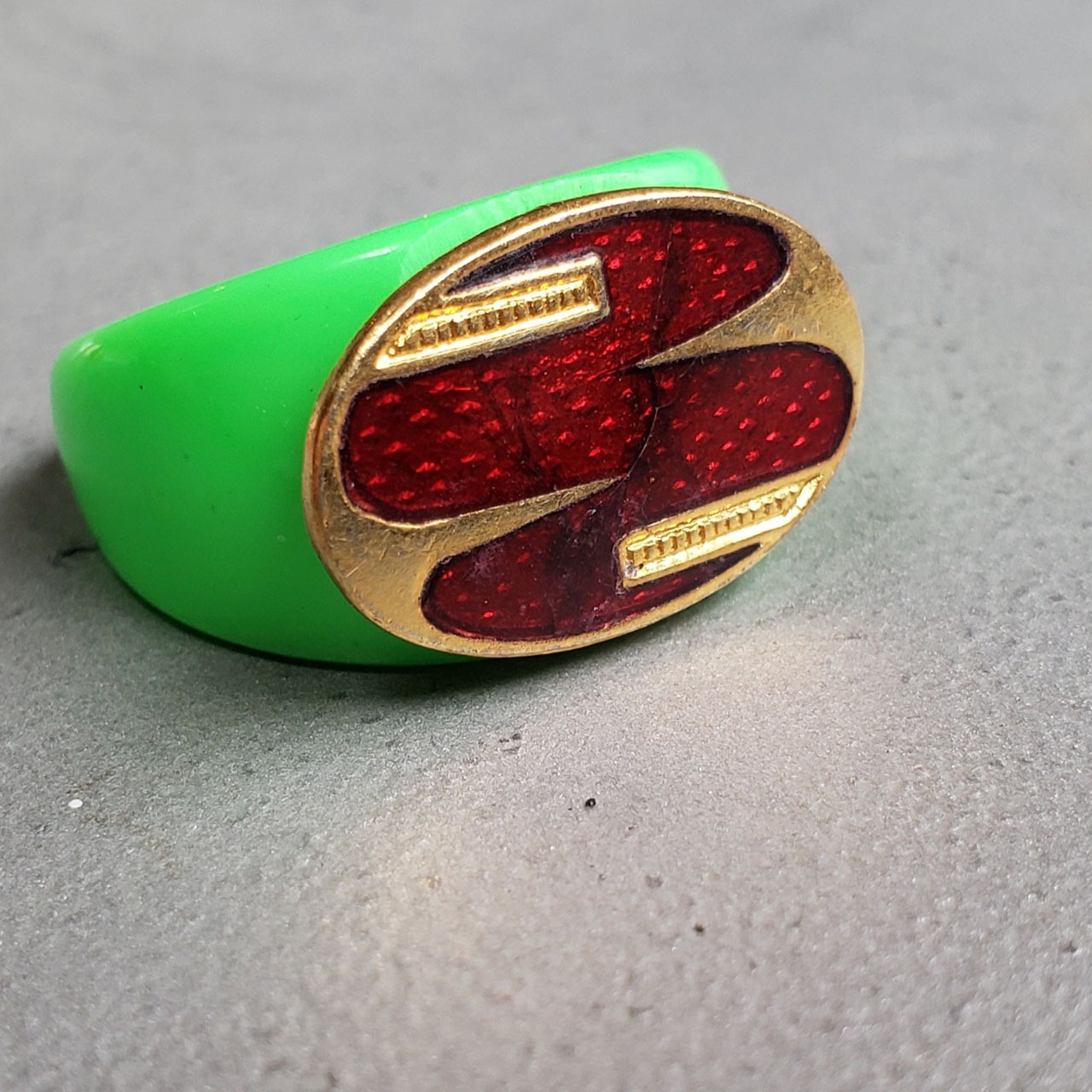 CR-0072 / 1960-80's/ France & England / Lucite / レトロスタイル / 緑 / Vintage Combo ring