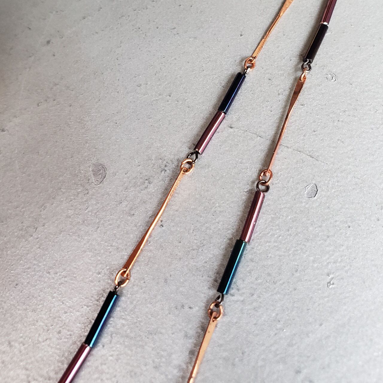 繊細なガラスビーズにメタルが組み合った素敵なデザインチェーン。