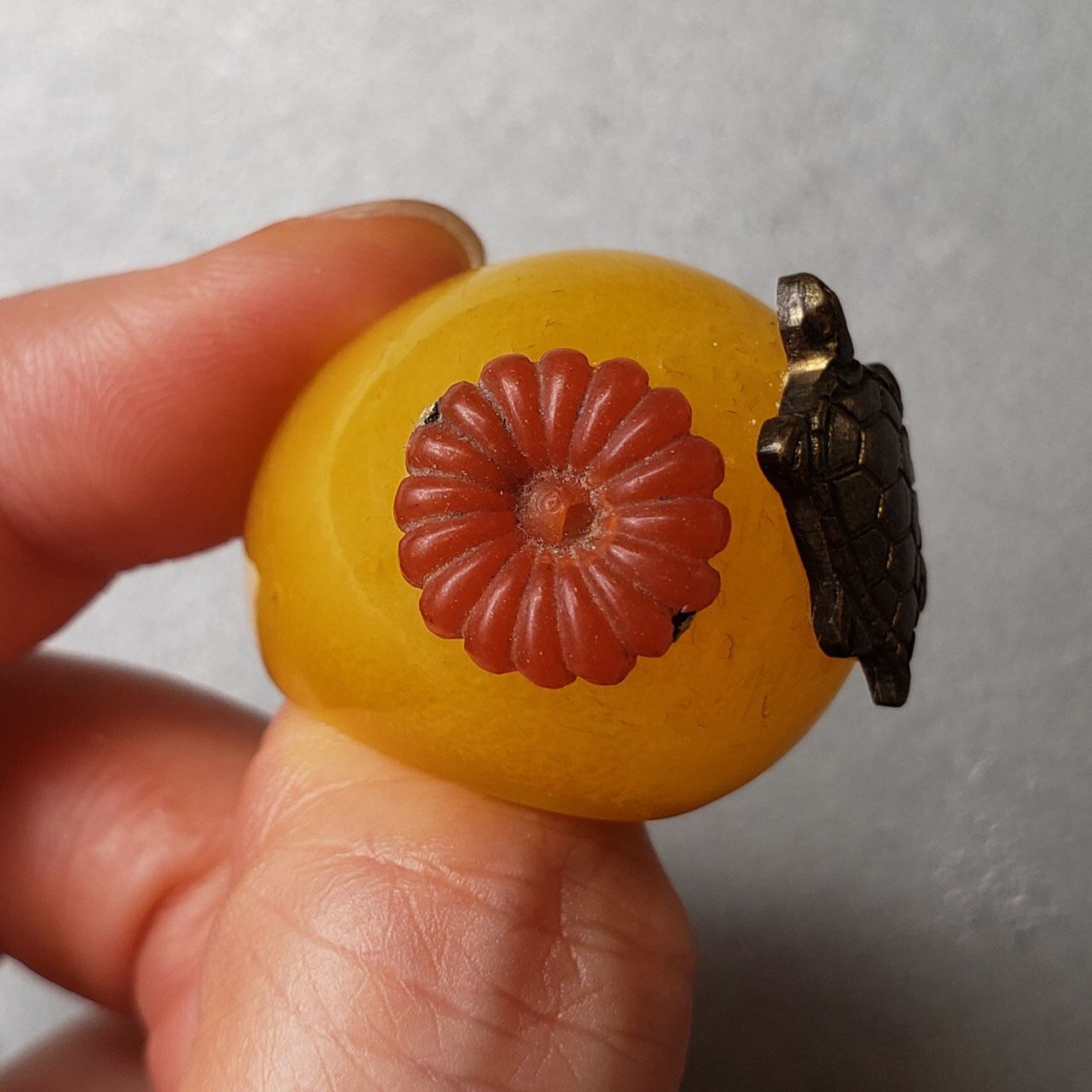CR-0076 / WAKOMBOH / 祝 / イエローアンバー / 亀と菊 / vintage combo ring