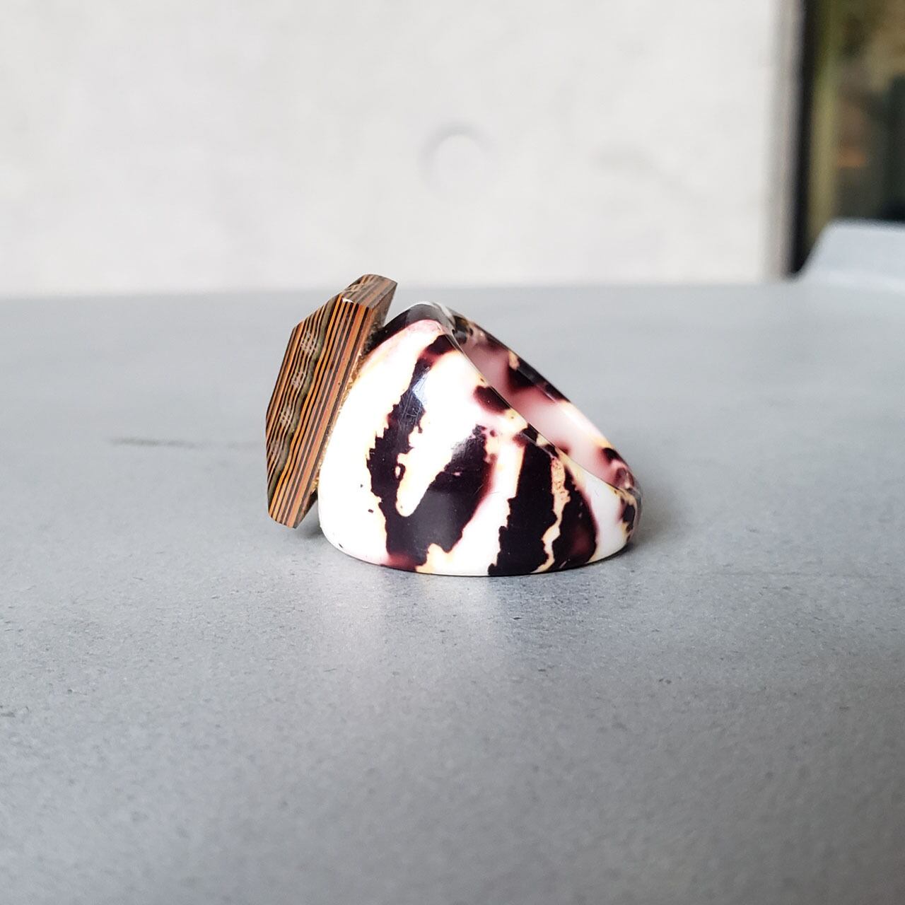CR-0082 / England / U.S. / ワイルドベークライト / アクリル / プリント / Vintage combo ring