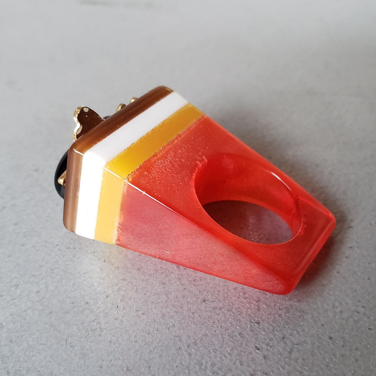 CR-0083 / W.Germany / Holland / ブラックビー / シーシェルライク / ミルフィーユルーサイト / Vintage combo ring