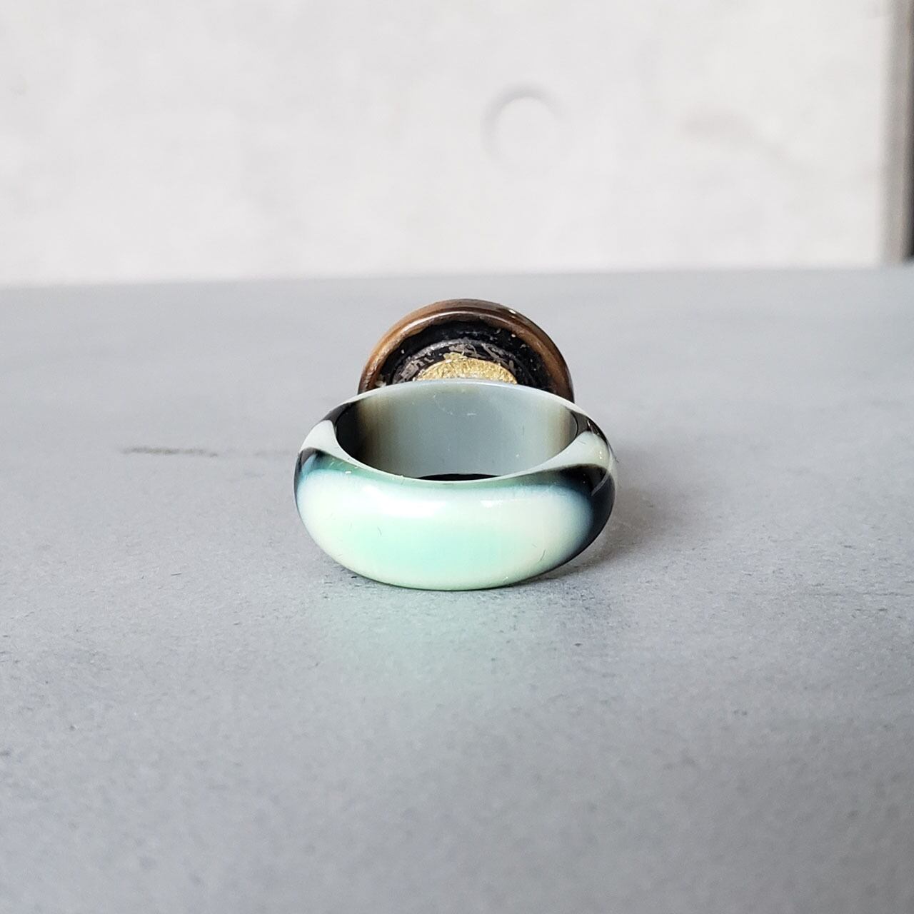 CR-0094 / Germany / U.S. / アンティークボタン / マーブルルーサイト / Vintage combo ring