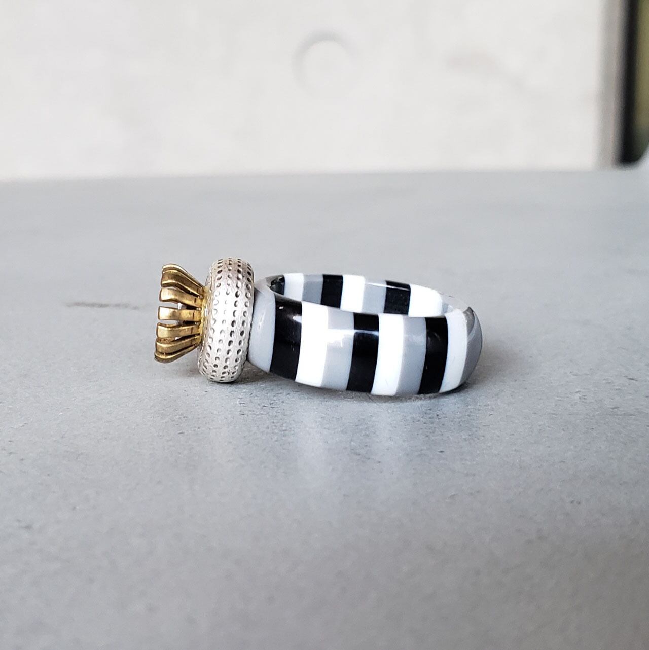 CR-0097 / W.Germany / England / 縞ルーサイト / メイソン / クラウン / Vintage combo ring