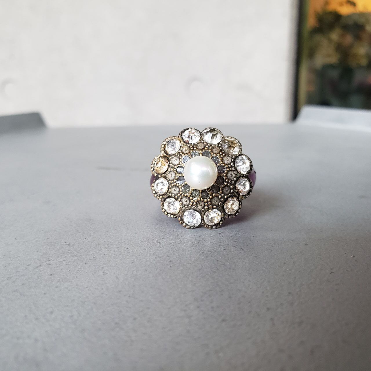 CR-0099 / France / ラメドームパープル / ルーサイト / 貝パールアンブレラ / Vintage combo ring