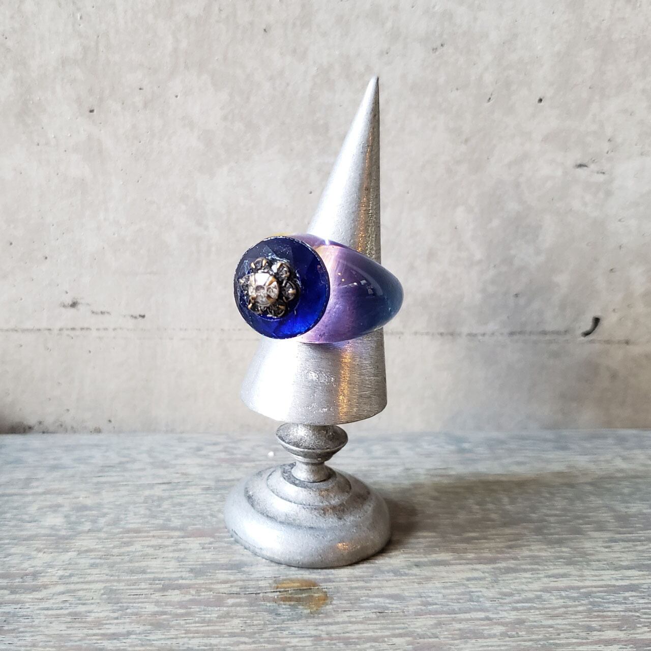 CR-0101 / England / The Star / クリアマーブルカラー / ルーサイト / ミスティックブルー Antique ガラス / Vintage combo ring