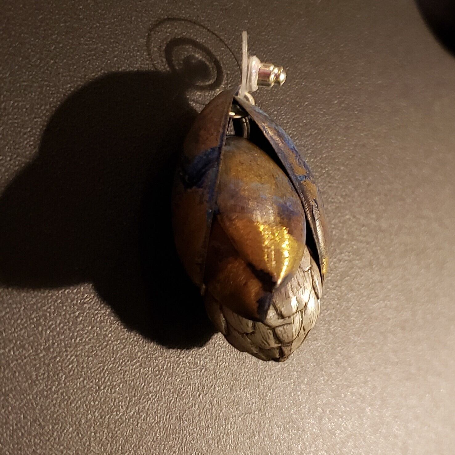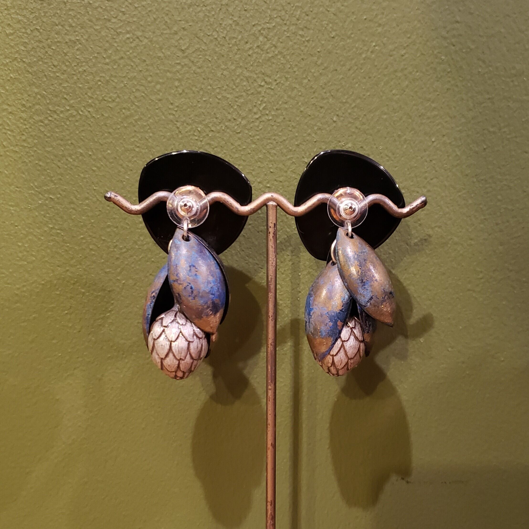 ぷっくり濃厚な赤に褪せたシャビーメタルの不思議なマッチング。更にアンティチョークモチーフが下がり、高級感のある大人っぽさと抜け感が心地よい耳飾りです。