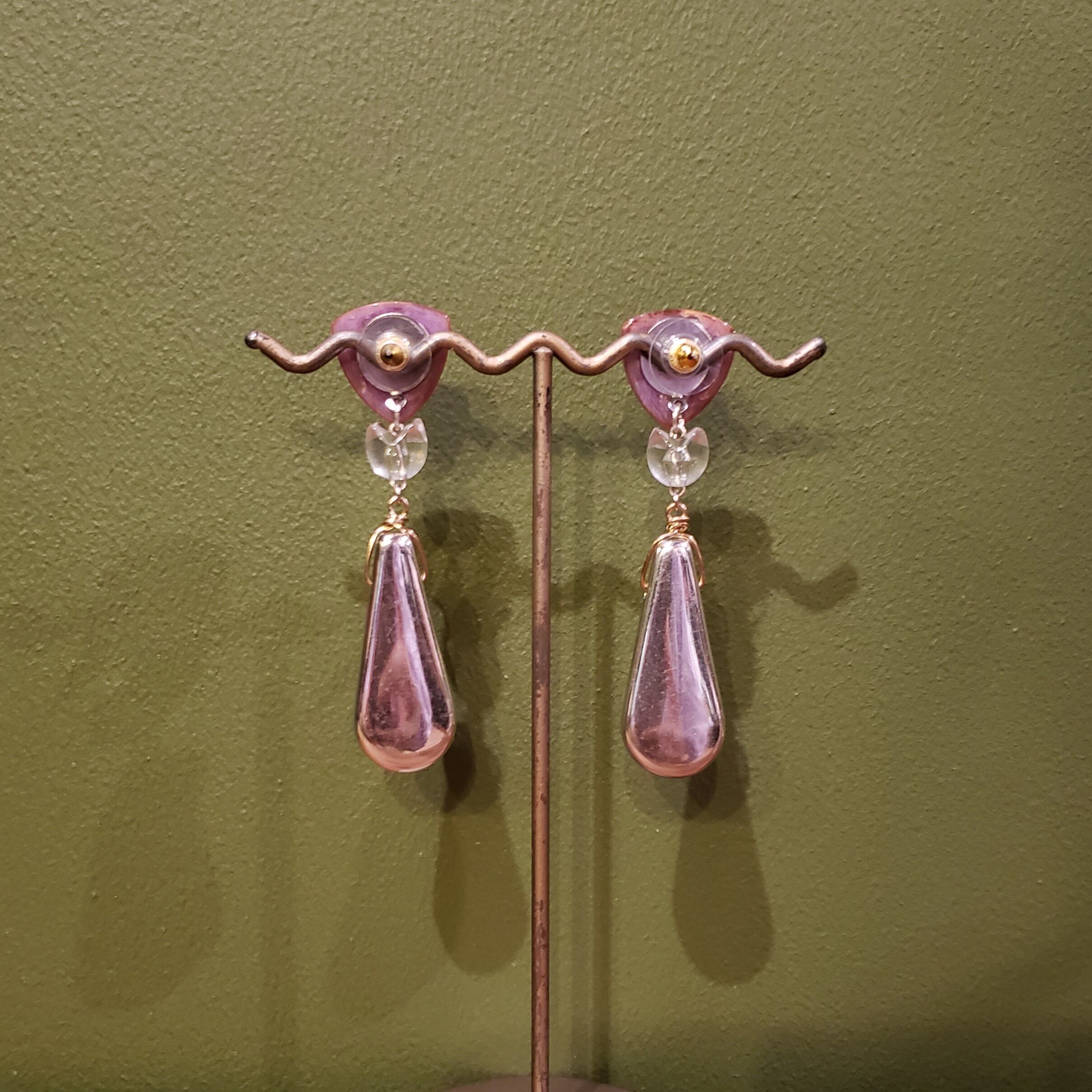 ぷっくりみずみずしいルーサイトの雫にさらにぷっくりしたカボションガラスがのった、イノセントな印象の耳飾り。秋冬コーデにも合う、カタリンベークライトを贅沢に使用し、大人ロマンチックなデザインに仕上がりました。