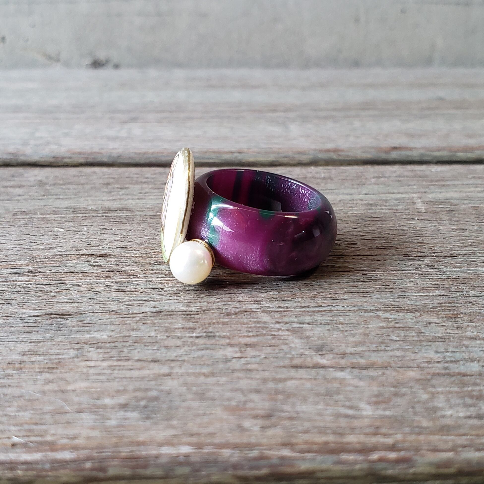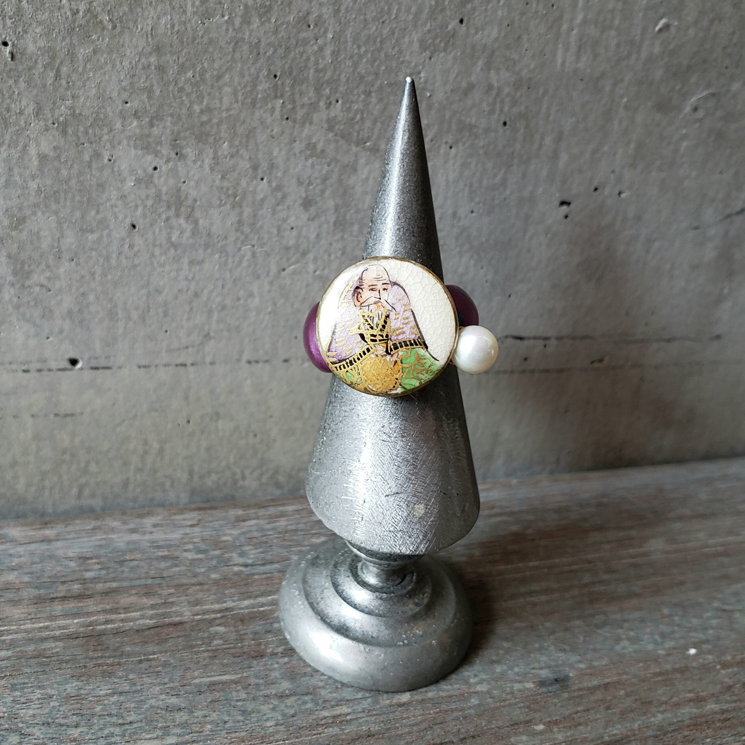 CR-0122 / アンティーク薩摩ボタン / 寿老人 / WAKONBOHリング