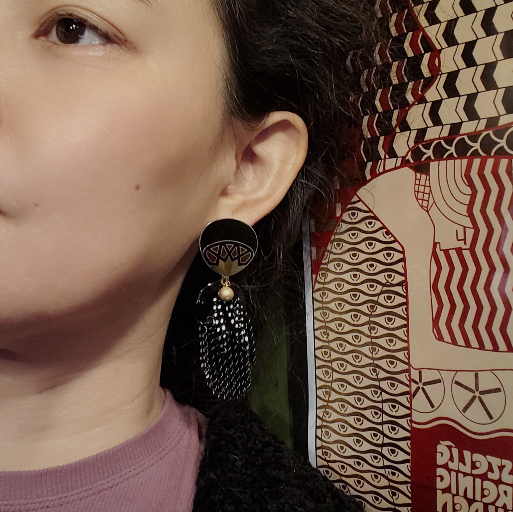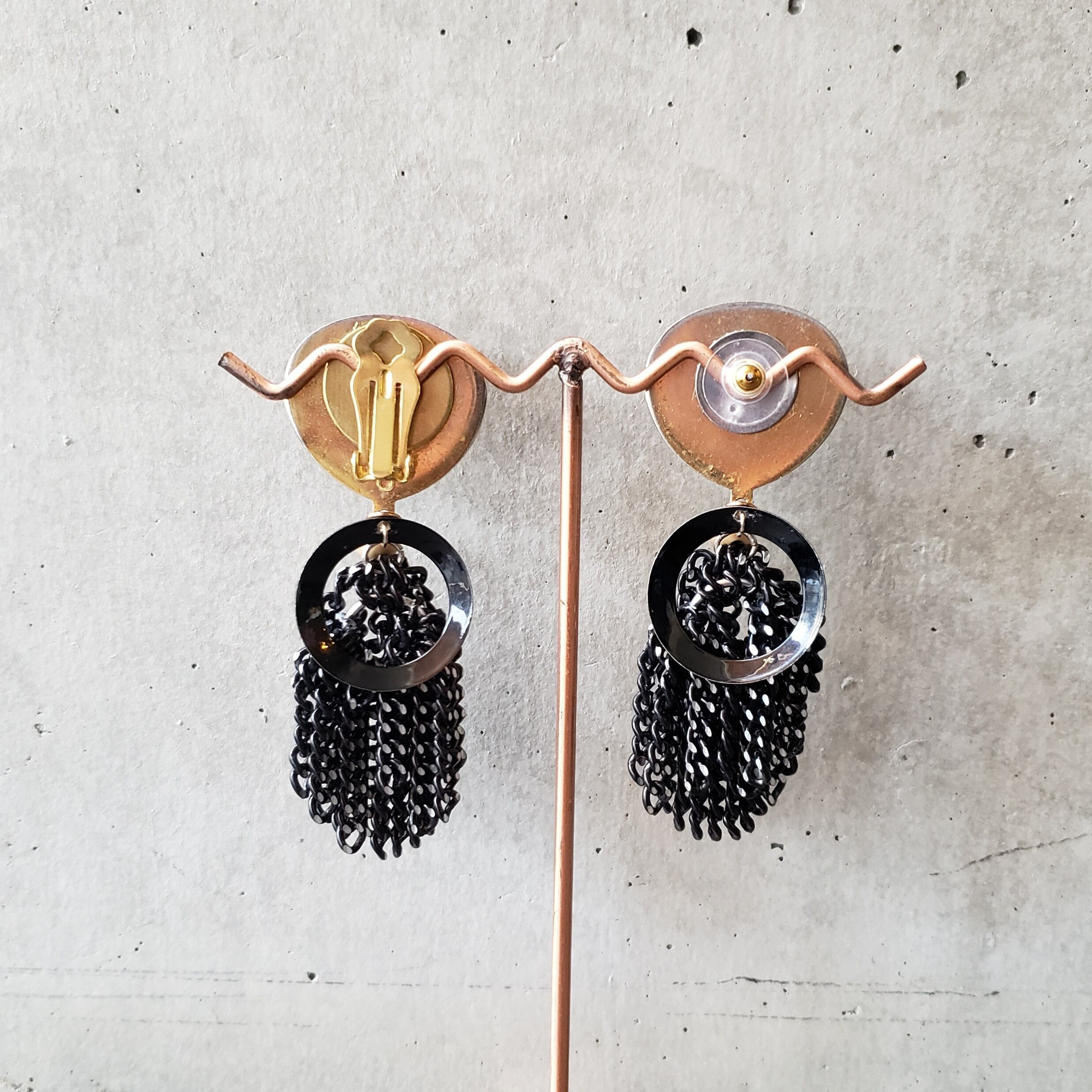 ふんわりフリンジチェーン / Black Flapper / Vintage combowピアスまたはクリップイヤリング