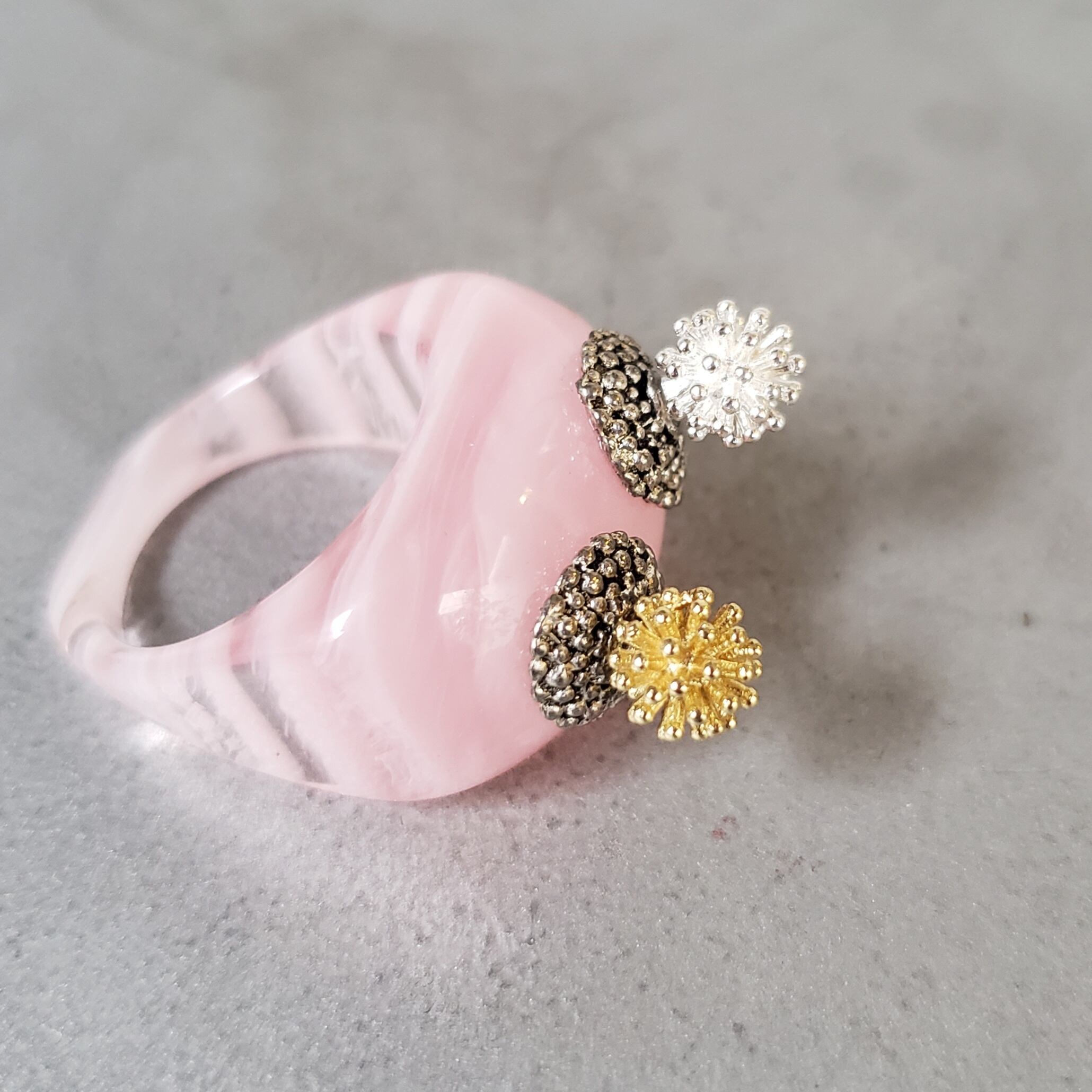 CR-0126/縞マーブルルーサイト / ぎんちゃくラビット / Vintage combo ring