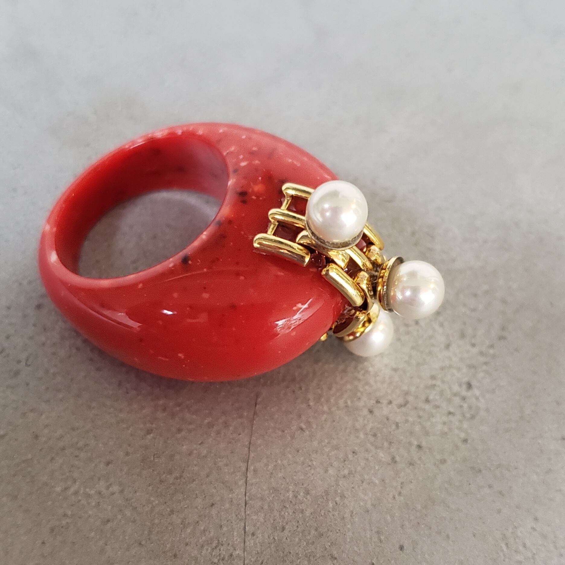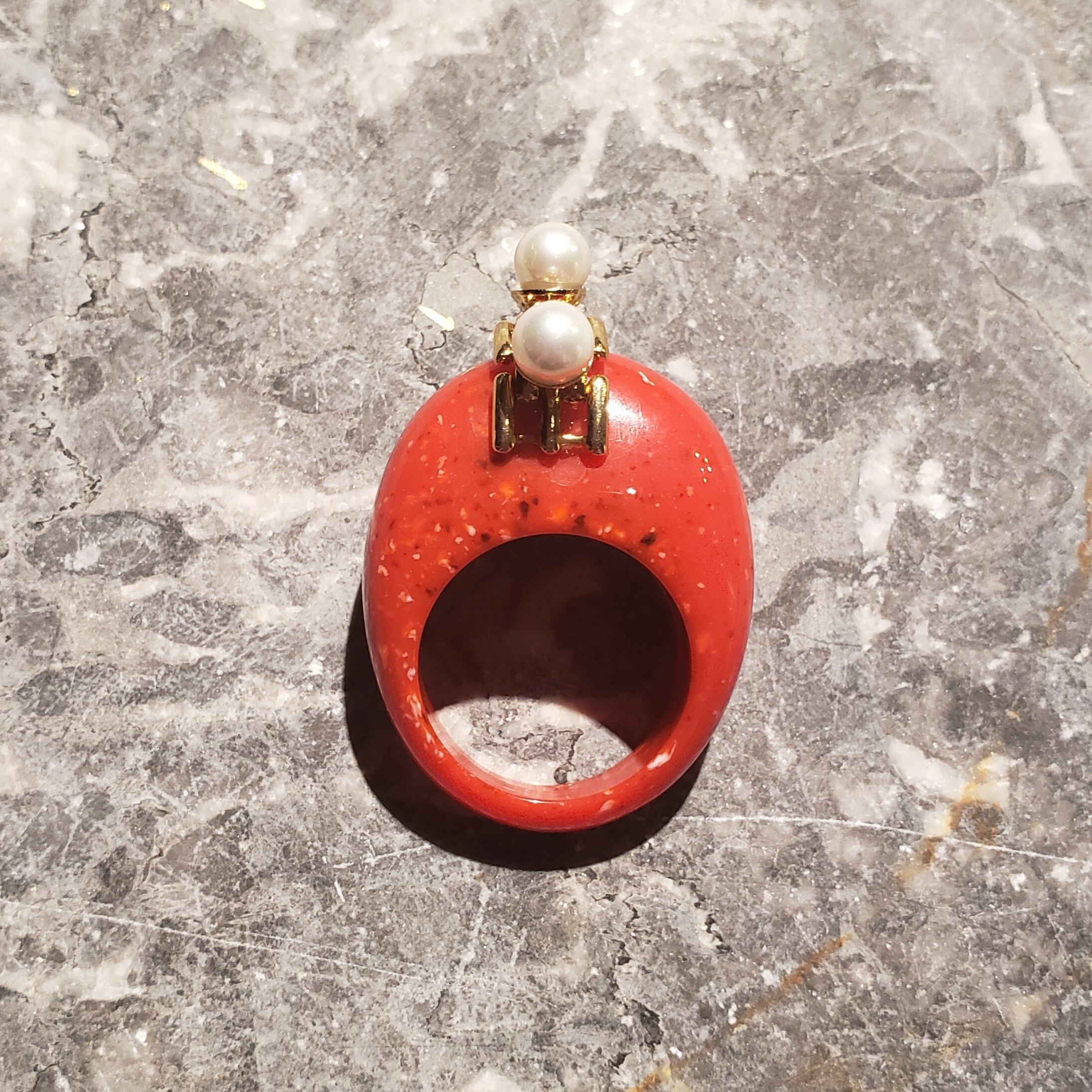 CR-0130 / そばかすコーラルルーサイト/ とさかパール / Vintage combo ring
