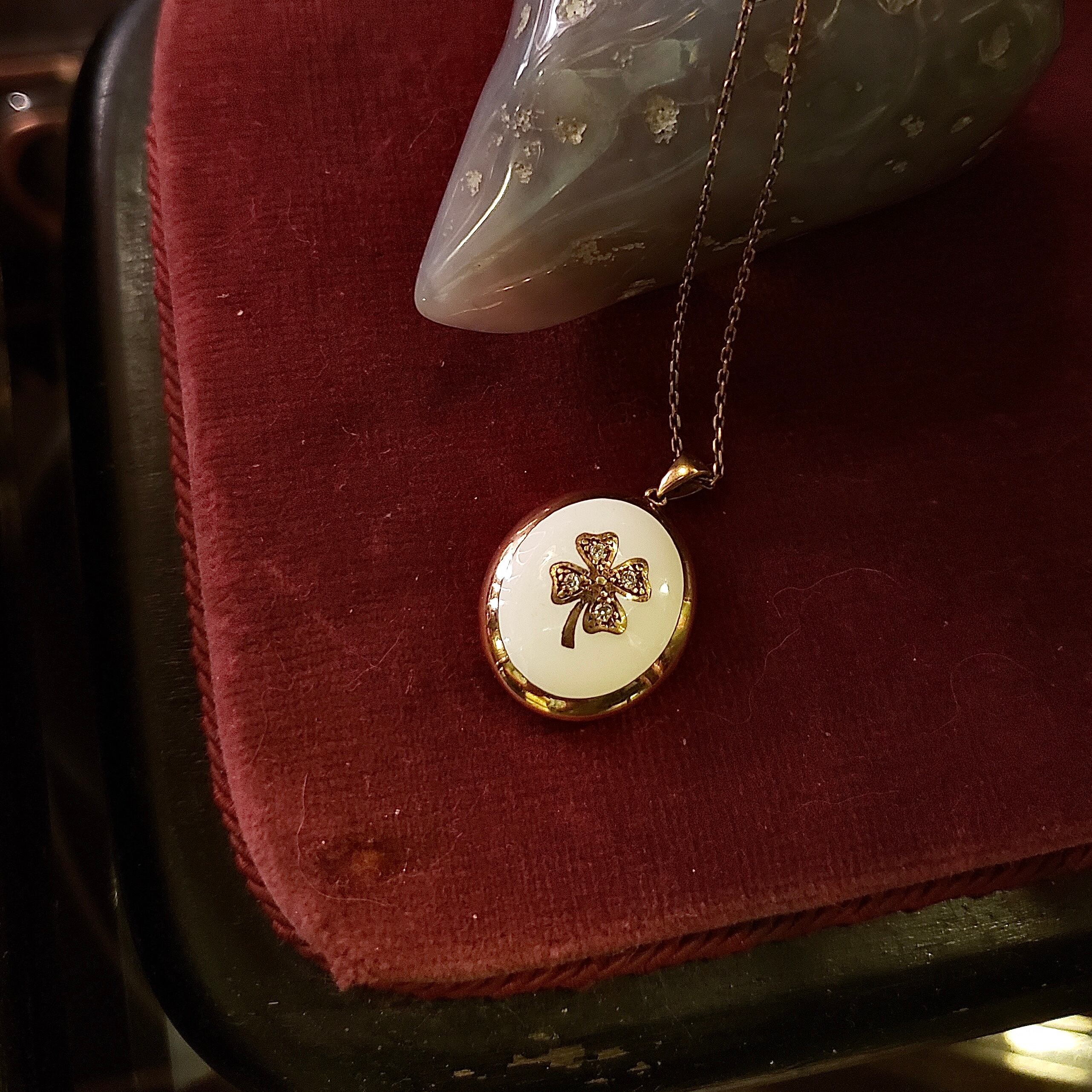 白エナメル/クローバーカボション/シルバー925/ロングチェーン/Vintage ネックレス