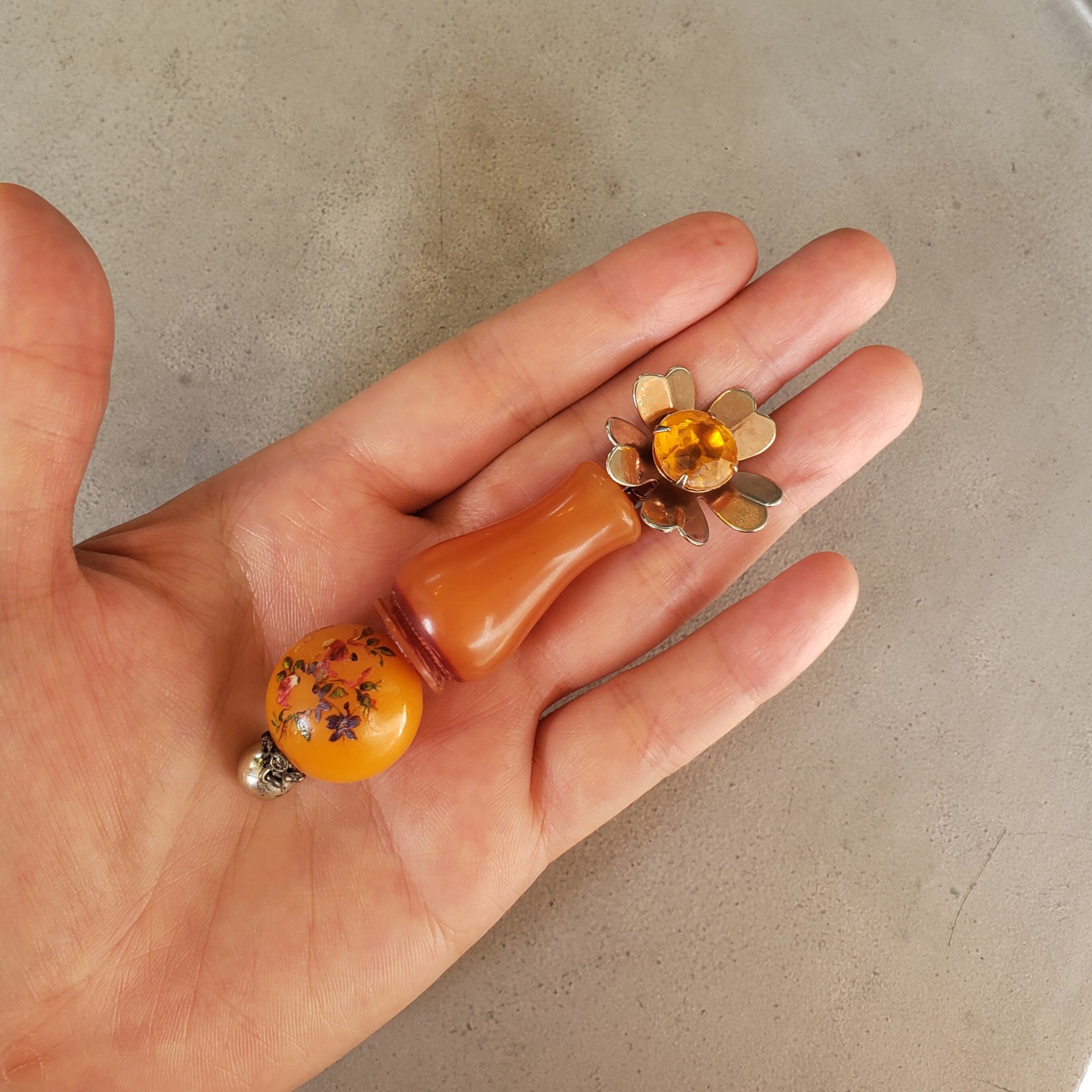 オレンジ色がお好きな貴方の為のヴィンテージピアス。希少アーリープラスチック★ベークライトの味わい深い質感と色みが素敵です。