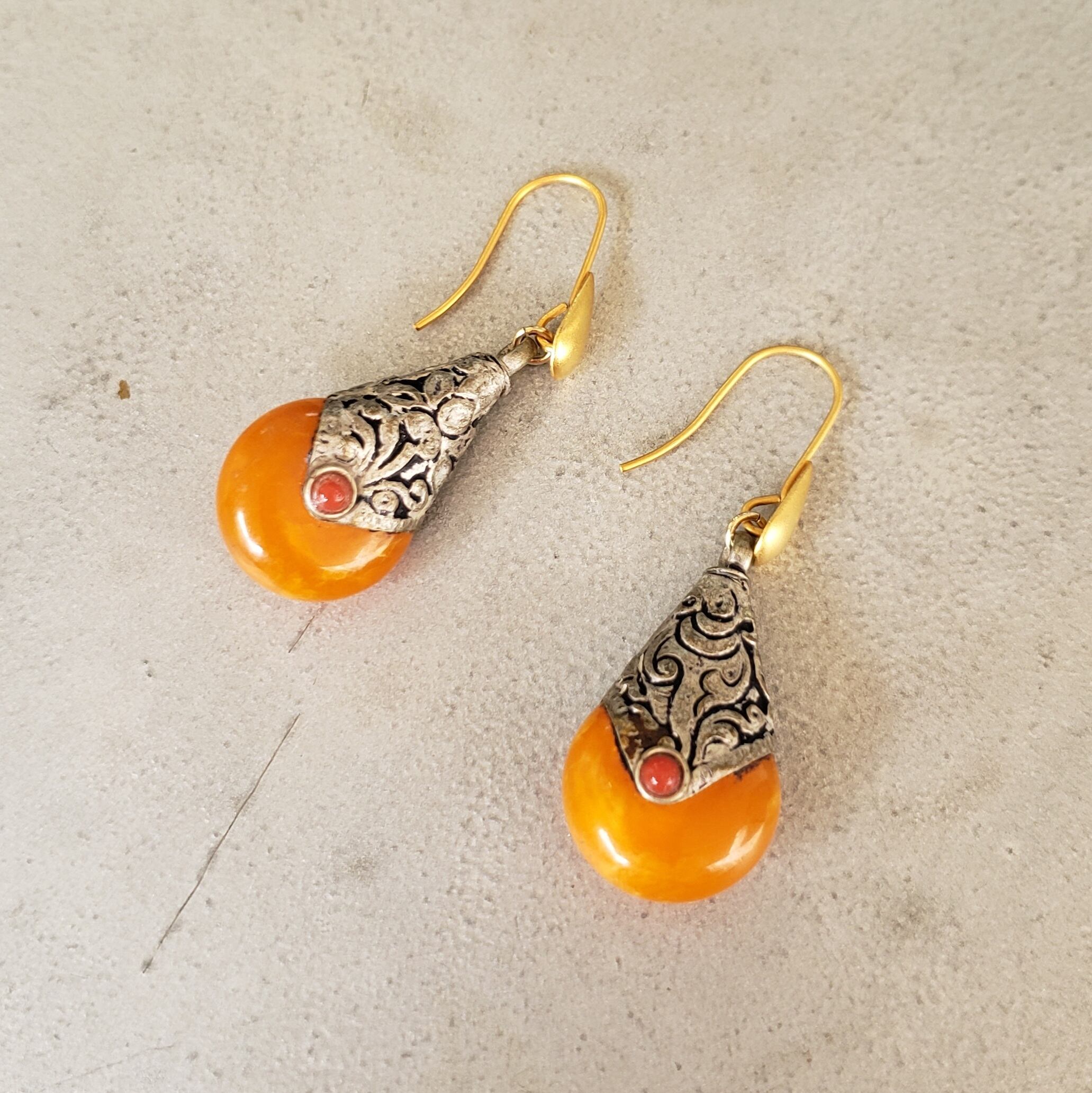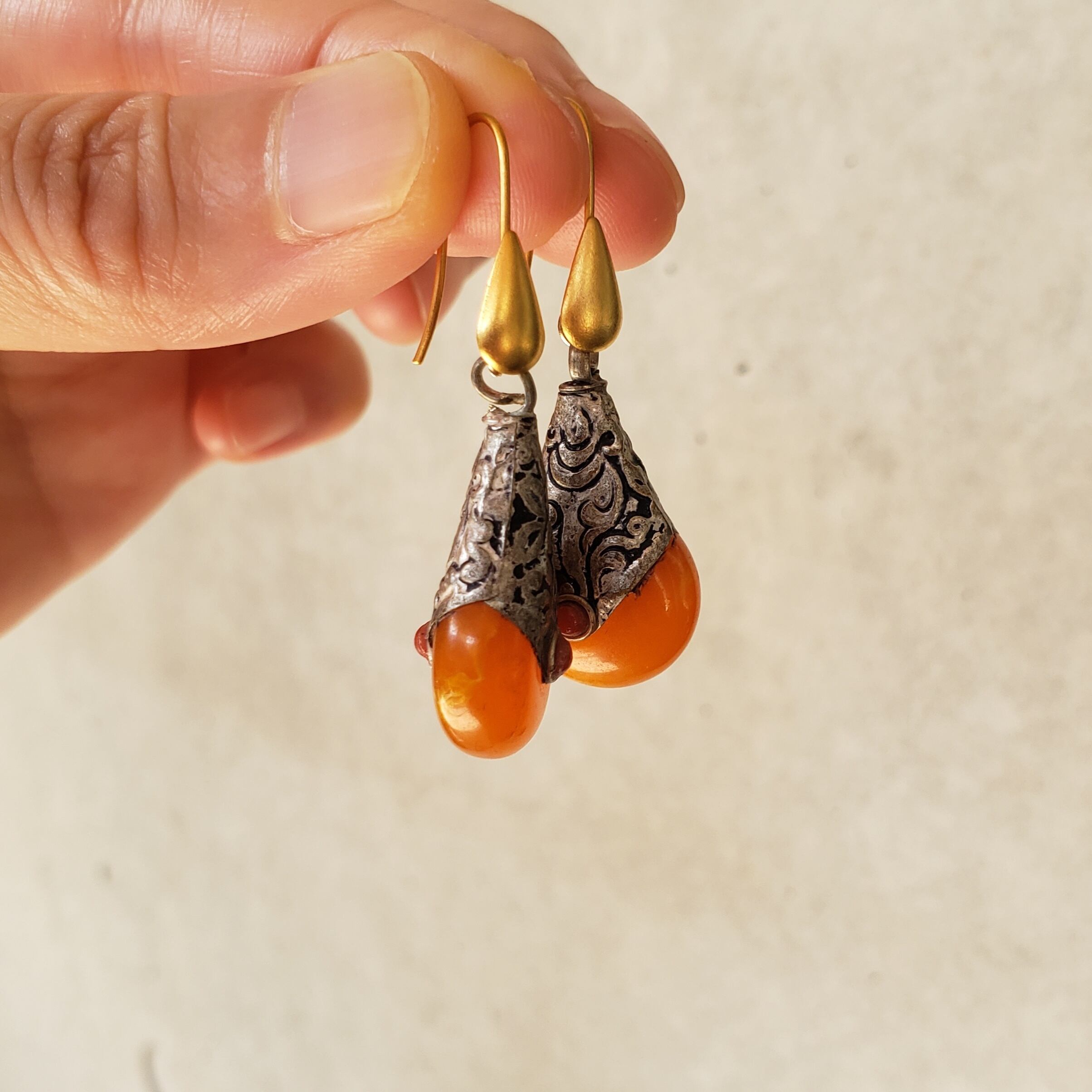 現行輸入/一粒ドロップ/カーネリアン/ピアス