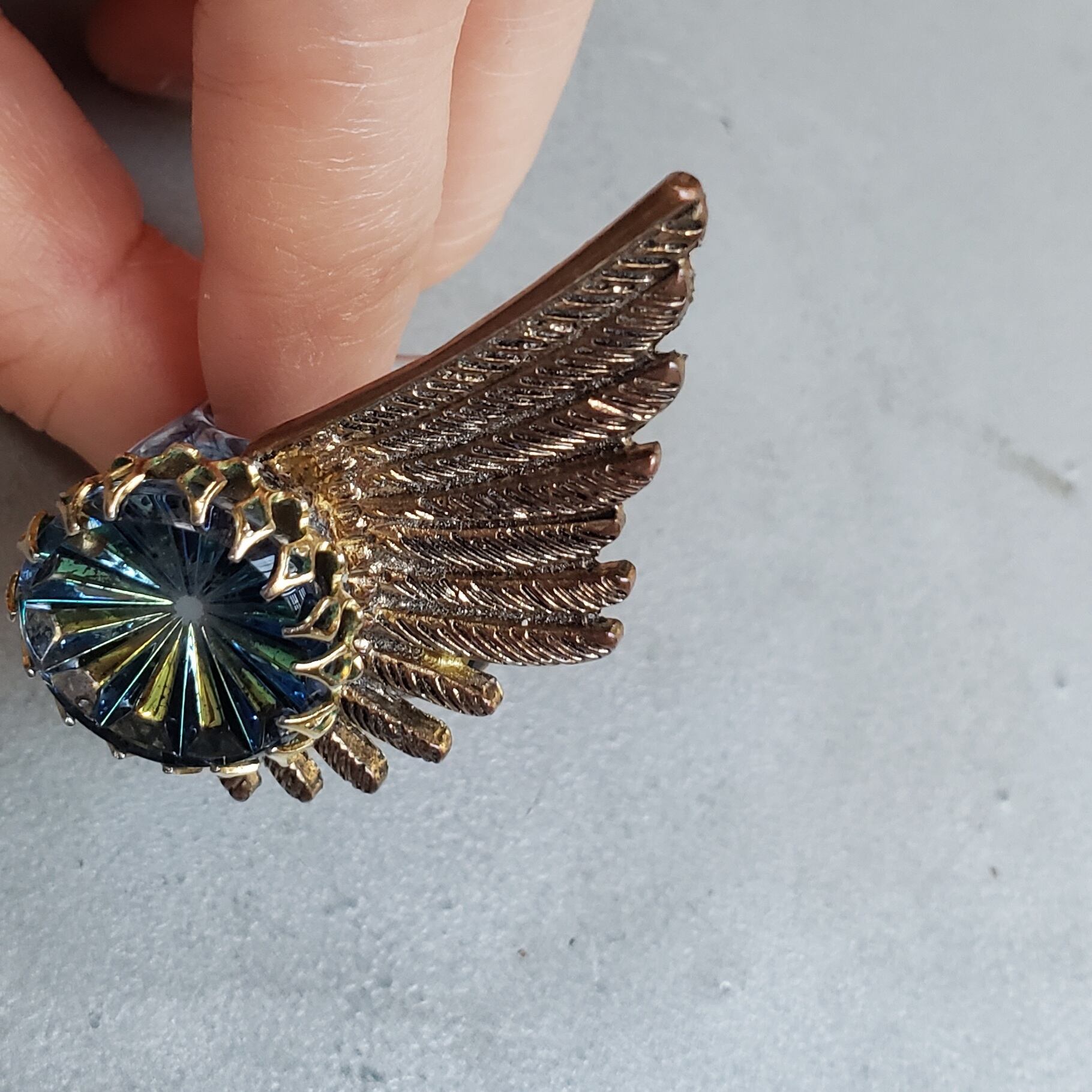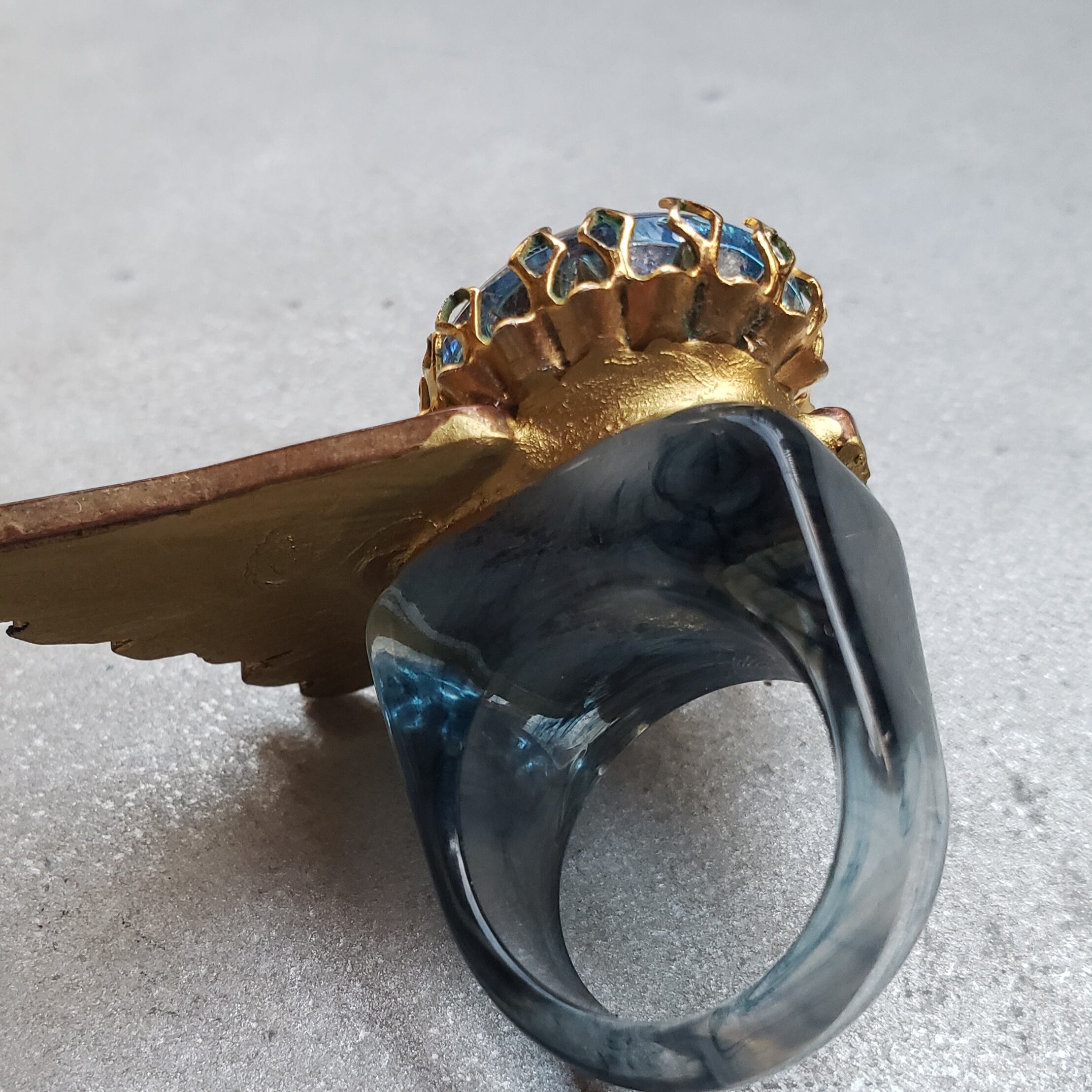CR-0138 / テイクア リープ / 飛び立つ羽根 / レジン / Vintage combo ring