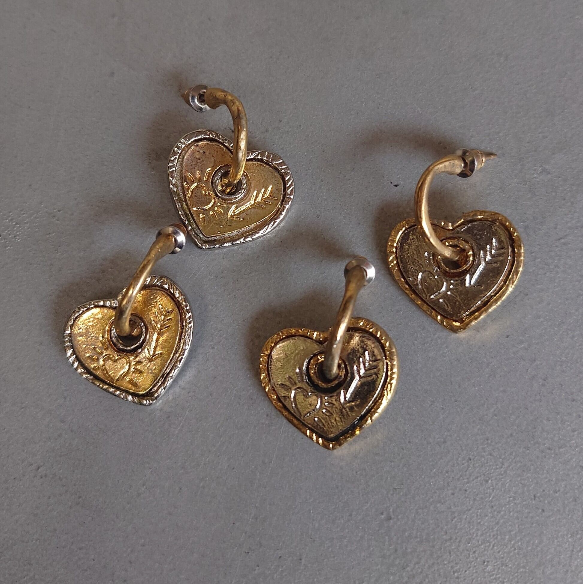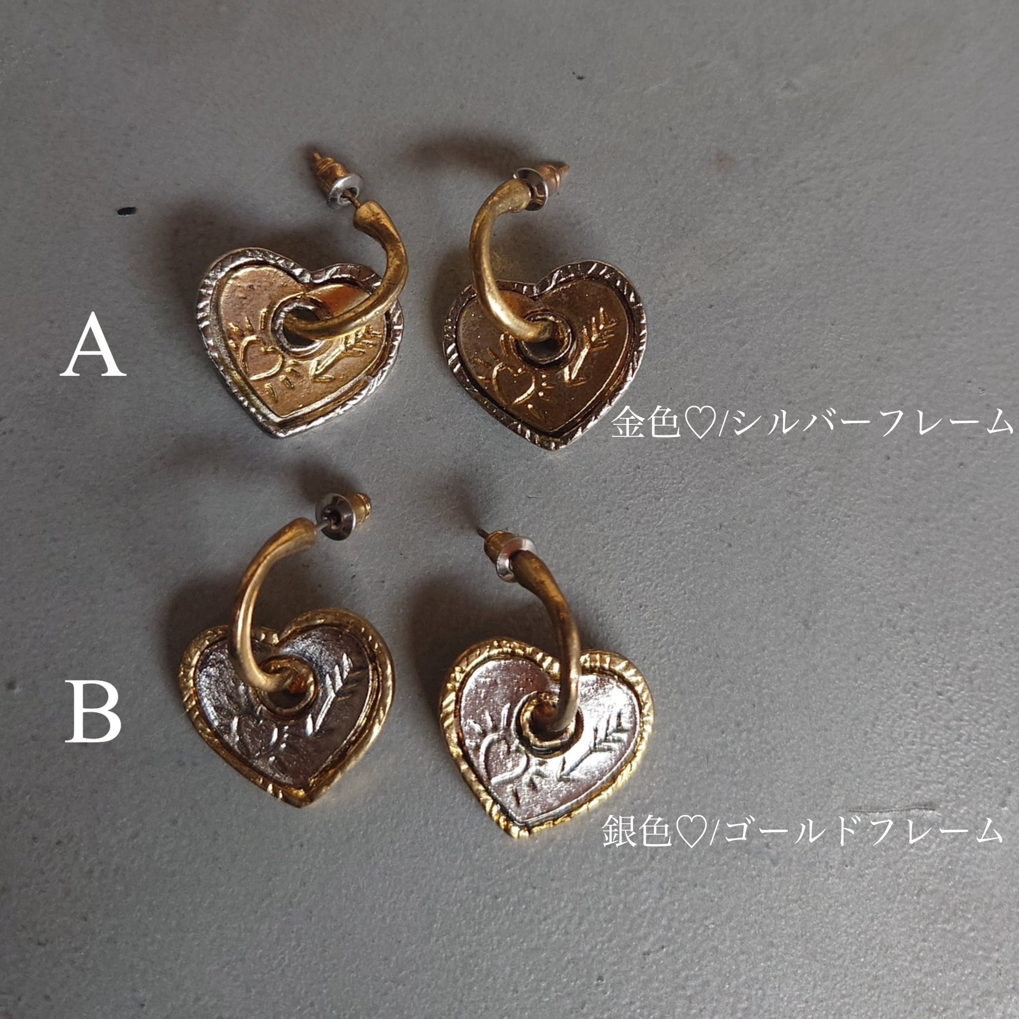 バイカラーになっているハートモチーフのピアス。